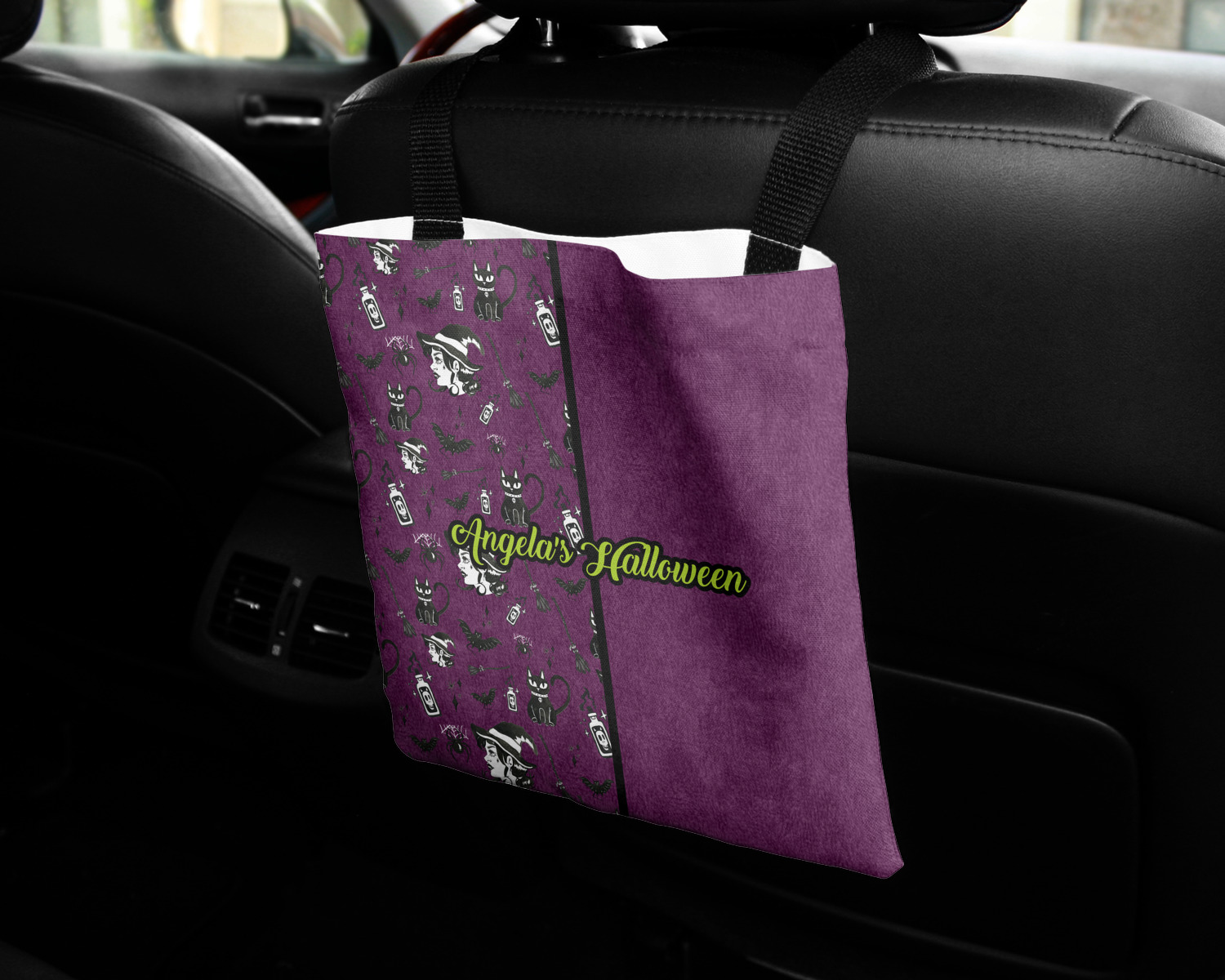 These car back seat organizers are sturdy tote-like bags, fabricated from a robust polyester, and features a single handle on the back side. The strap features an attachable velcro for easy attachment to headrests, grocery carts, car seats, and more. Simply undo the velcro, loop the strap around the headrest, reattach the velcro, and let the organizer hang from the front seat. These car organizers are the perfect means of increasing your backseat's legroom, while storing multiple items in one place for better accessibility. Each car back seat organizer measures at 10 by 10 inches, and features your personalized design printed across its front and back.