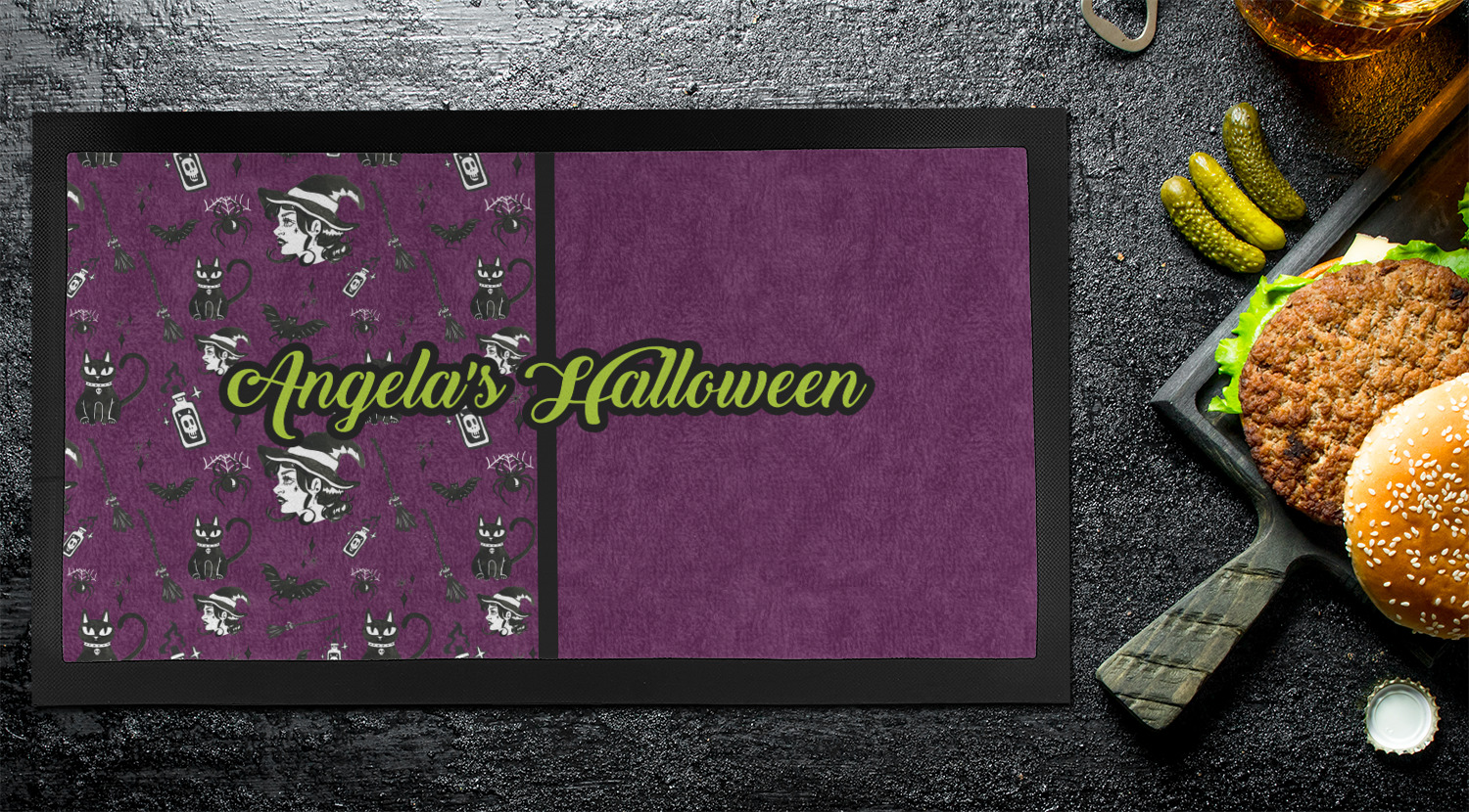 This fun design has a dark violet velvet looking (not real velvet - digital) background. On top of the digital velvet is a pattern full of beautiful illustrations of witches, potions, black cats, bats, and more. The main design is split in two with this background on one side and a plain violet digital velvet on the other. Your personalization is placed in the bottom right corner to give a lovely asymmetrical look. The coordinating design has a gorgeous large illustration of a witch with a little saying above and below her that says "I'll put a spell on you."
