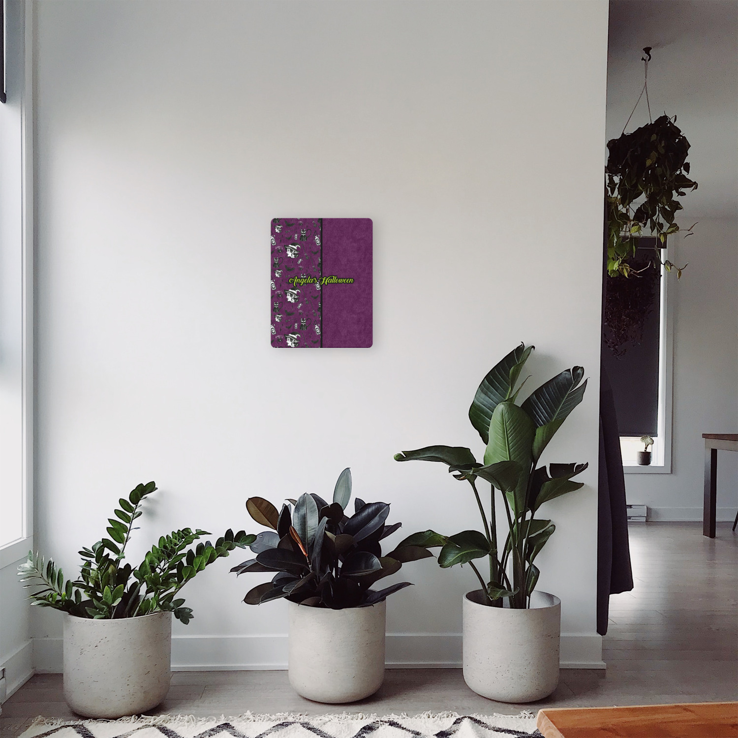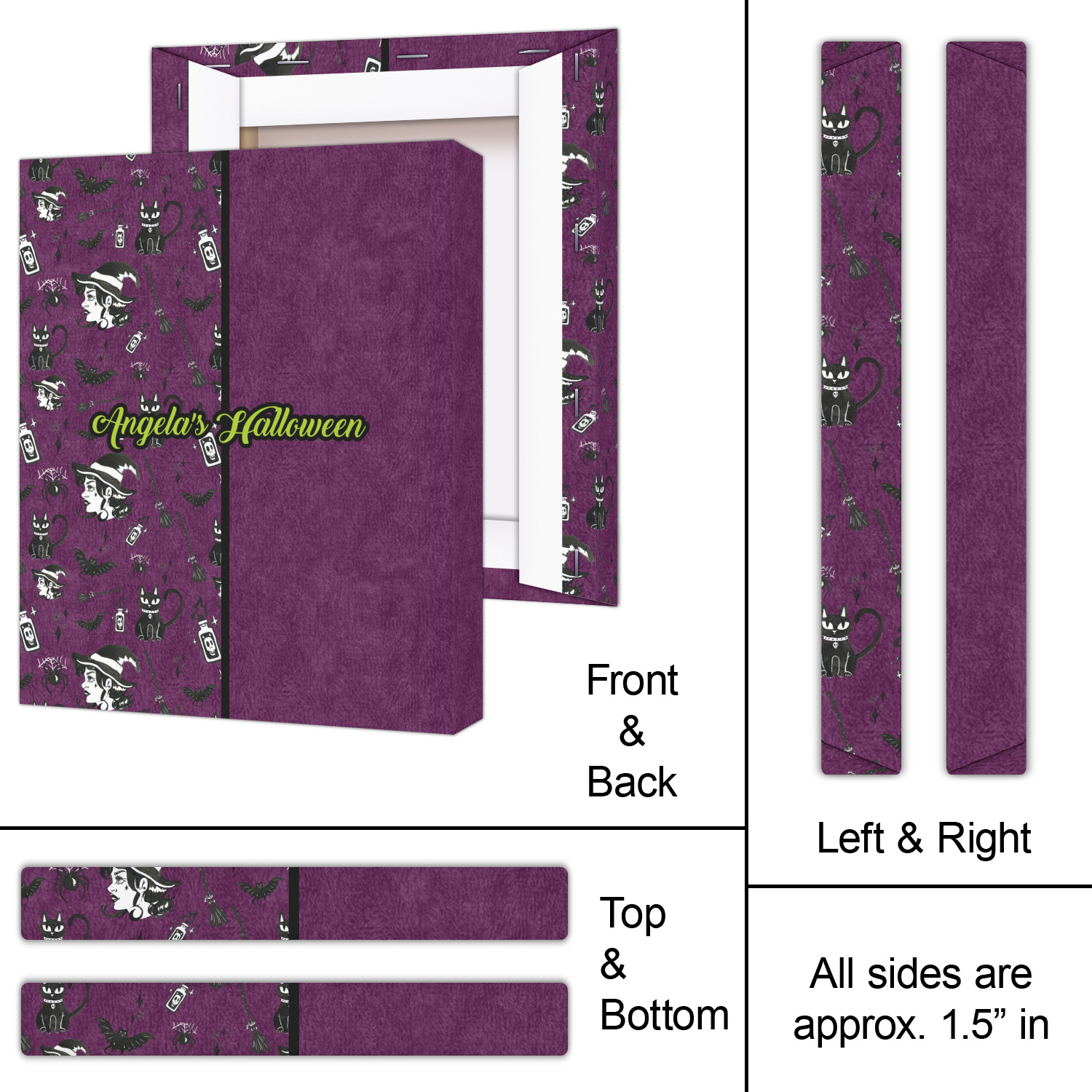This fun design has a dark violet velvet looking (not real velvet - digital) background. On top of the digital velvet is a pattern full of beautiful illustrations of witches, potions, black cats, bats, and more. The main design is split in two with this background on one side and a plain violet digital velvet on the other. Your personalization is placed in the bottom right corner to give a lovely asymmetrical look. The coordinating design has a gorgeous large illustration of a witch with a little saying above and below her that says "I'll put a spell on you."