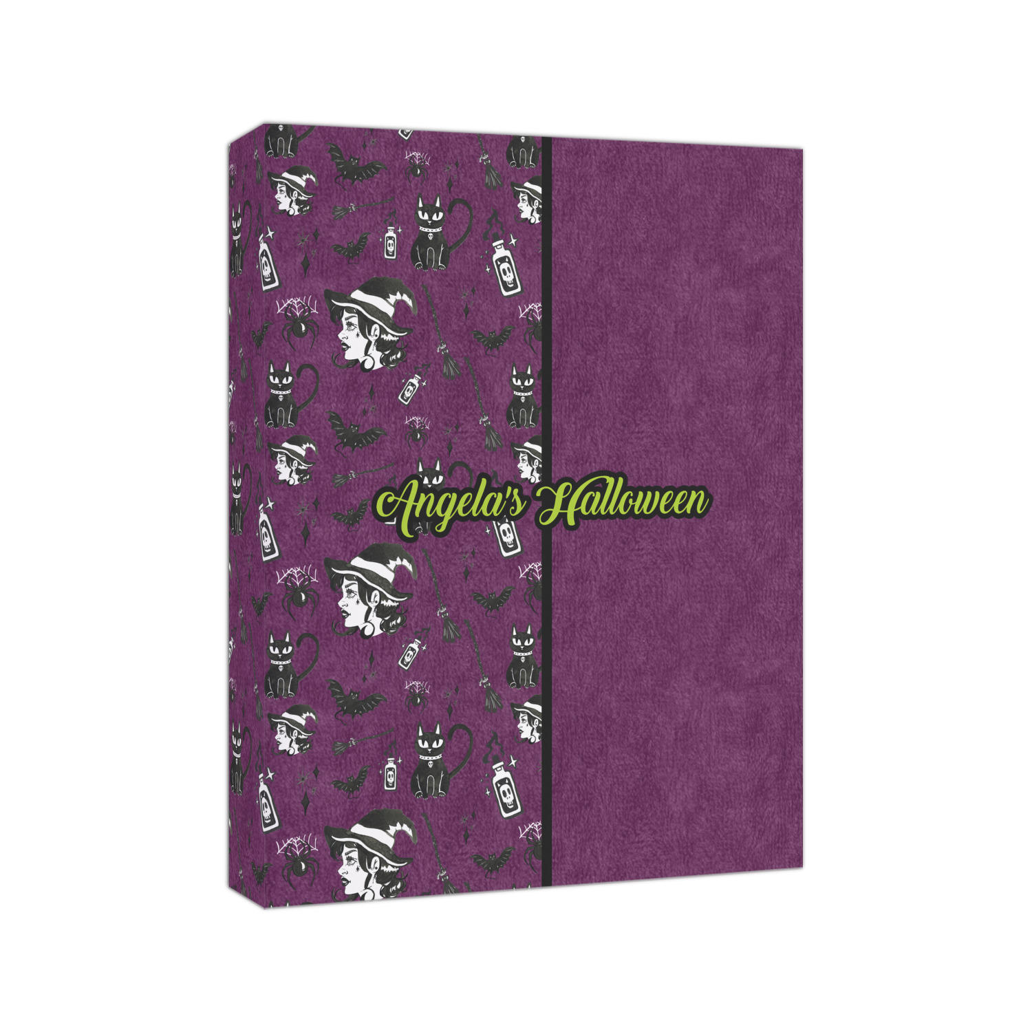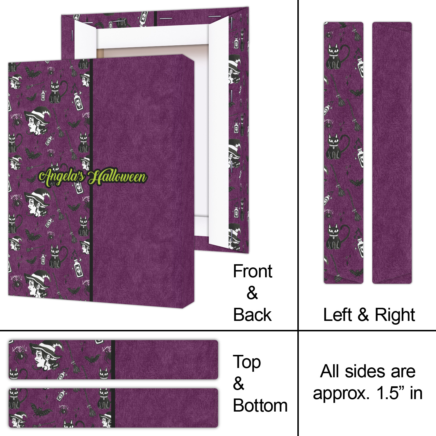 This fun design has a dark violet velvet looking (not real velvet - digital) background. On top of the digital velvet is a pattern full of beautiful illustrations of witches, potions, black cats, bats, and more. The main design is split in two with this background on one side and a plain violet digital velvet on the other. Your personalization is placed in the bottom right corner to give a lovely asymmetrical look. The coordinating design has a gorgeous large illustration of a witch with a little saying above and below her that says "I'll put a spell on you."