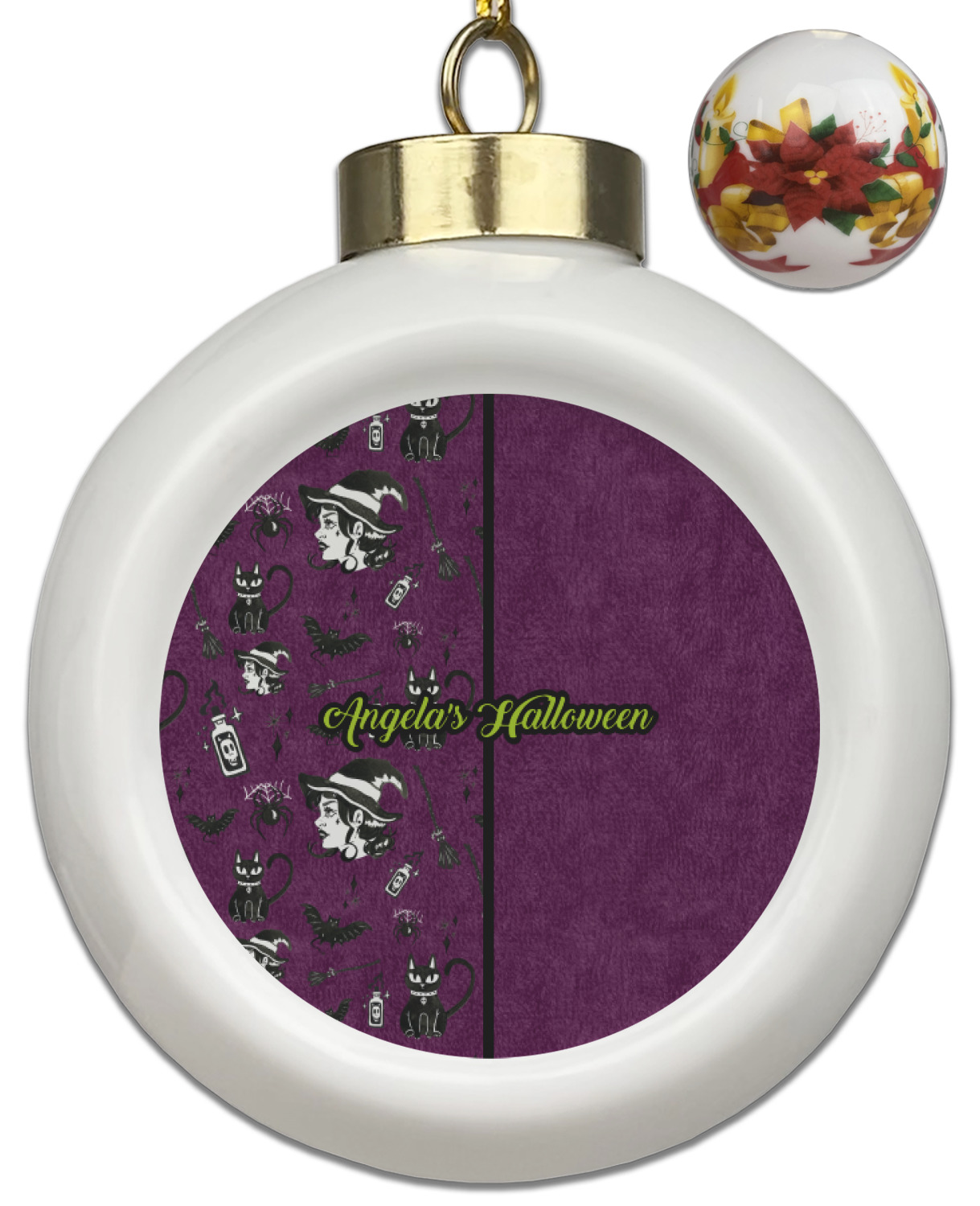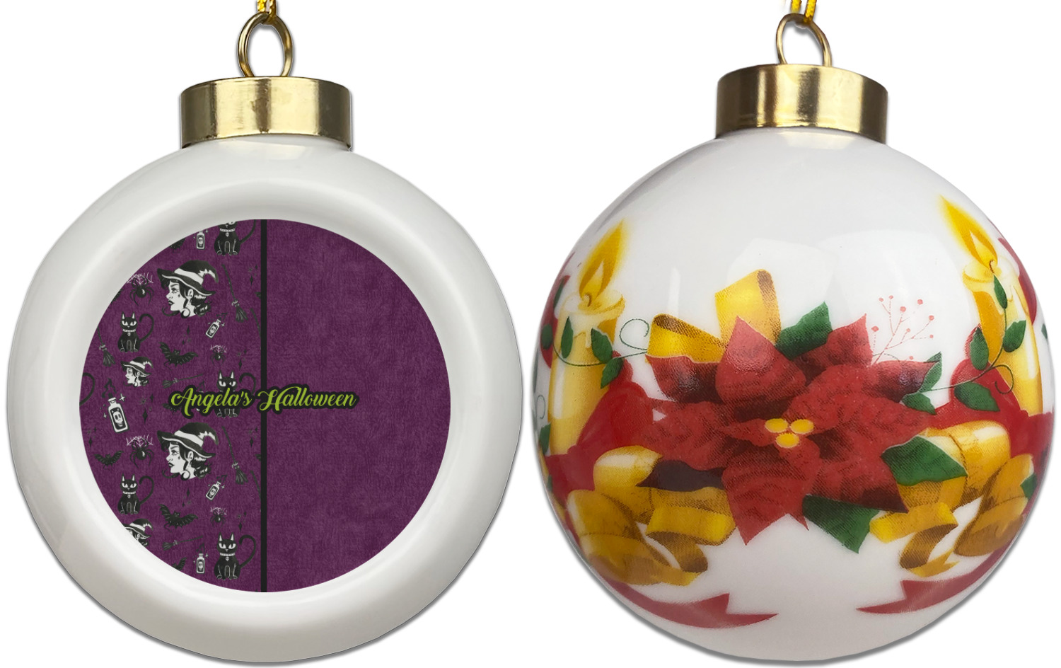 Our Christmas ornaments are a unique ceramic ball shape with a twist as it has a flat face to display your custom design! Select from one of our two design types - Christmas Tree or Poinsettia Garland - to adorn the curved back of your personal design. Each ornament measures 3H x 2.5W x 2D accompanied with a gold string accent for finishing touches to hang on your beautiful Christmas tree!
