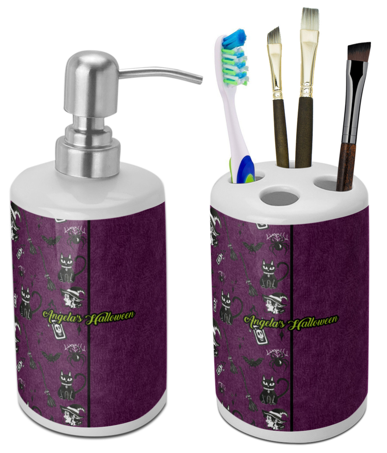 This two piece, ceramic bathroom set will add the perfect splash of color to any bathroom. This set includes one pump dispenser, ideal for soap or lotion, and one toothbrush holder with four holes. Although originally designed for toothbrushes, the holder will also hold make-up brushes, nail files, and other bathroom tools.