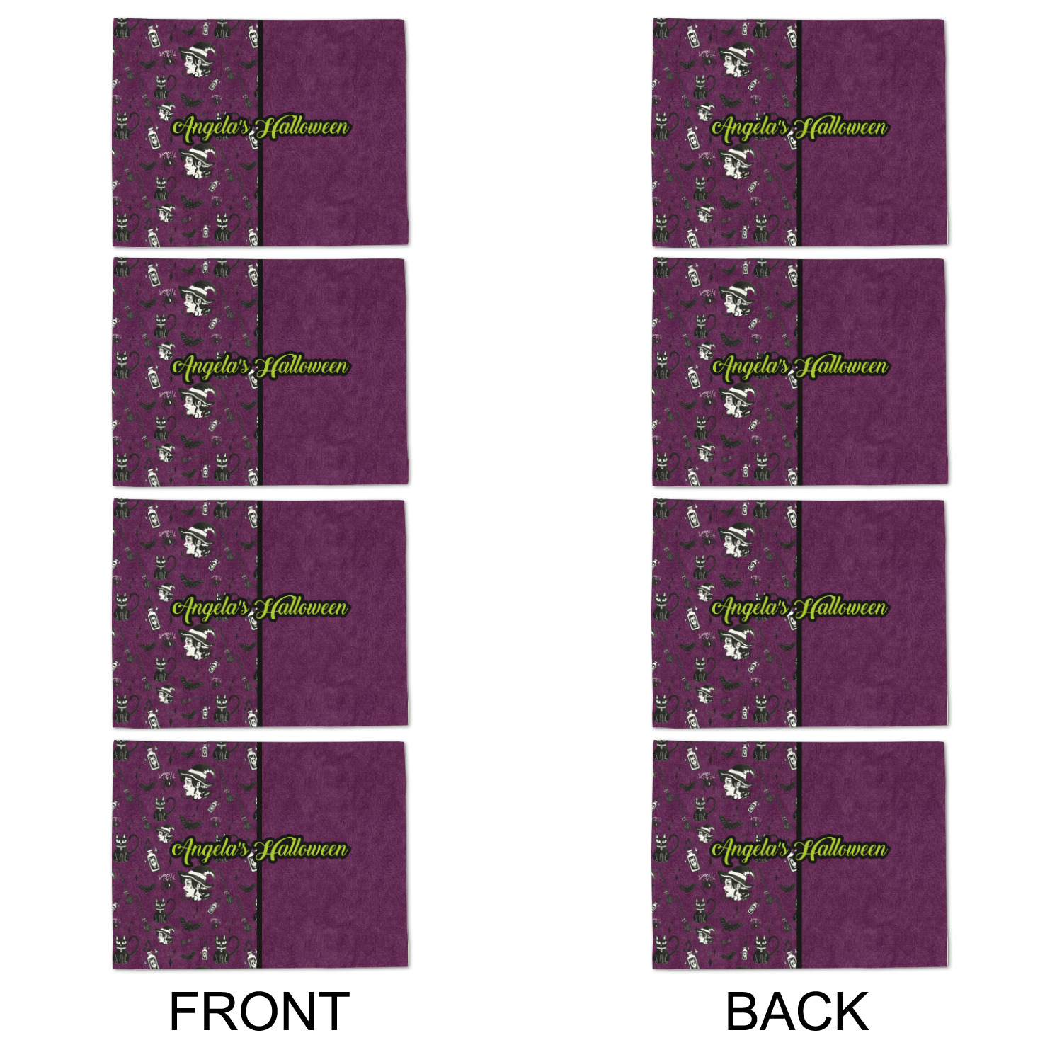 This fun design has a dark violet velvet looking (not real velvet - digital) background. On top of the digital velvet is a pattern full of beautiful illustrations of witches, potions, black cats, bats, and more. The main design is split in two with this background on one side and a plain violet digital velvet on the other. Your personalization is placed in the bottom right corner to give a lovely asymmetrical look. The coordinating design has a gorgeous large illustration of a witch with a little saying above and below her that says "I'll put a spell on you."