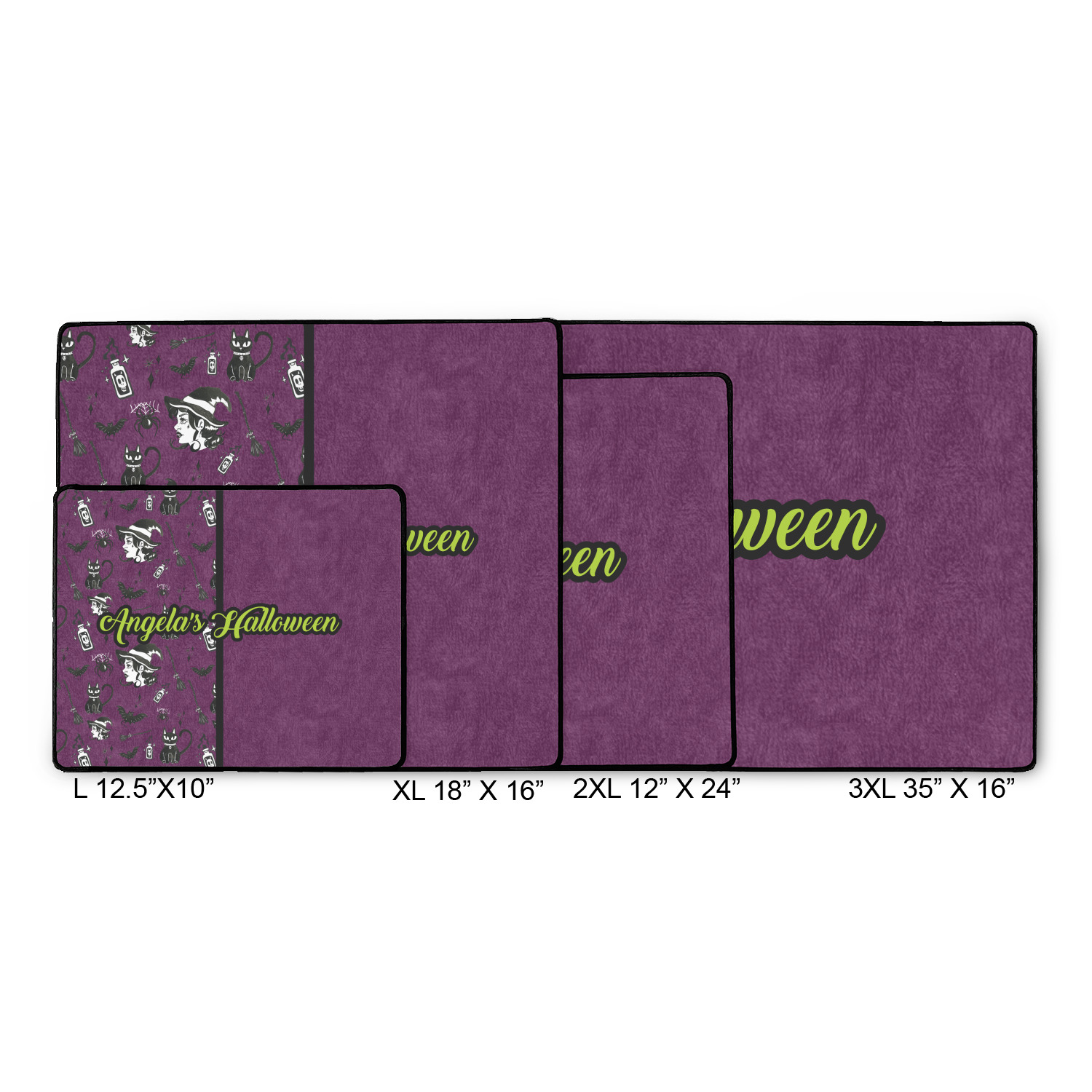 This fun design has a dark violet velvet looking (not real velvet - digital) background. On top of the digital velvet is a pattern full of beautiful illustrations of witches, potions, black cats, bats, and more. The main design is split in two with this background on one side and a plain violet digital velvet on the other. Your personalization is placed in the bottom right corner to give a lovely asymmetrical look. The coordinating design has a gorgeous large illustration of a witch with a little saying above and below her that says "I'll put a spell on you."