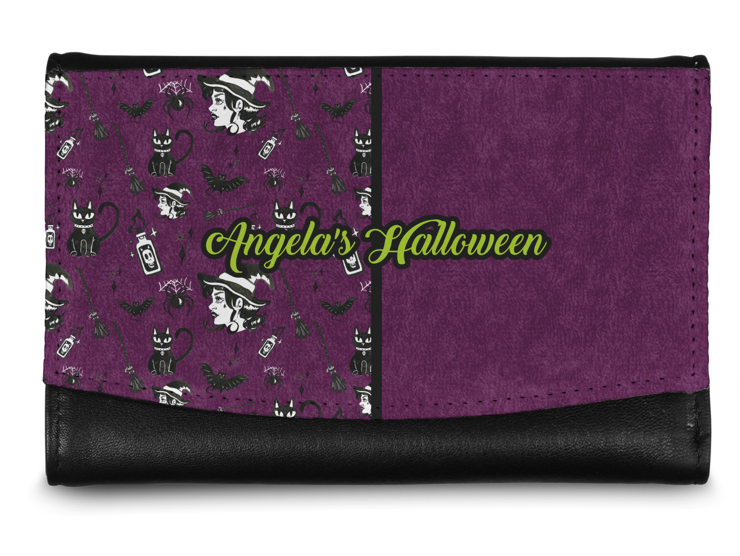 This fun design has a dark violet velvet looking (not real velvet - digital) background. On top of the digital velvet is a pattern full of beautiful illustrations of witches, potions, black cats, bats, and more. The main design is split in two with this background on one side and a plain violet digital velvet on the other. Your personalization is placed in the bottom right corner to give a lovely asymmetrical look. The coordinating design has a gorgeous large illustration of a witch with a little saying above and below her that says "I'll put a spell on you."