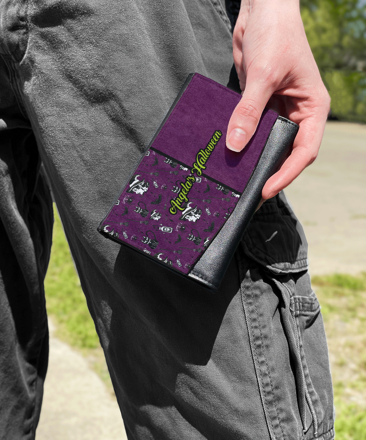 The compact size of this wallet - 5.5in wide, 3.5in tall and 0.75in thick when folded - makes it perfect to hold in hand and small enough to fit in a clutch or a normal size purse. The outside flap is customized with your choice of artwork and closes with a snap closure - with two different snaps to allow it to be adjusted when storing more items - to securely fasten the flap.