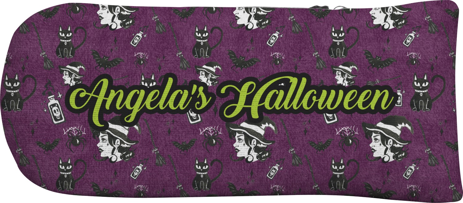 This fun design has a dark violet velvet looking (not real velvet - digital) background. On top of the digital velvet is a pattern full of beautiful illustrations of witches, potions, black cats, bats, and more. The main design is split in two with this background on one side and a plain violet digital velvet on the other. Your personalization is placed in the bottom right corner to give a lovely asymmetrical look. The coordinating design has a gorgeous large illustration of a witch with a little saying above and below her that says "I'll put a spell on you."