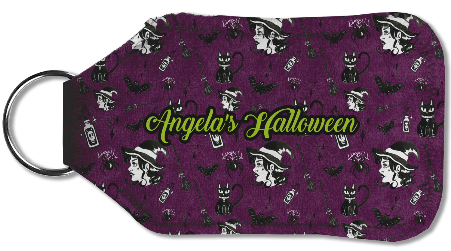 This fun design has a dark violet velvet looking (not real velvet - digital) background. On top of the digital velvet is a pattern full of beautiful illustrations of witches, potions, black cats, bats, and more. The main design is split in two with this background on one side and a plain violet digital velvet on the other. Your personalization is placed in the bottom right corner to give a lovely asymmetrical look. The coordinating design has a gorgeous large illustration of a witch with a little saying above and below her that says "I'll put a spell on you."