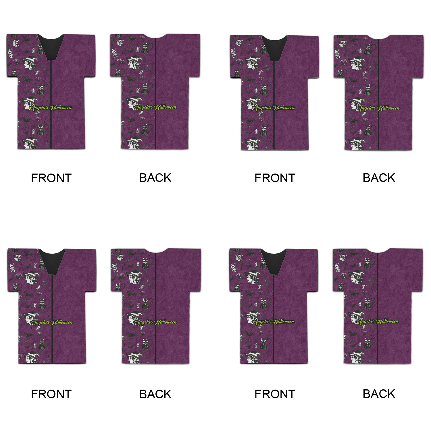 This fun design has a dark violet velvet looking (not real velvet - digital) background. On top of the digital velvet is a pattern full of beautiful illustrations of witches, potions, black cats, bats, and more. The main design is split in two with this background on one side and a plain violet digital velvet on the other. Your personalization is placed in the bottom right corner to give a lovely asymmetrical look. The coordinating design has a gorgeous large illustration of a witch with a little saying above and below her that says "I'll put a spell on you."