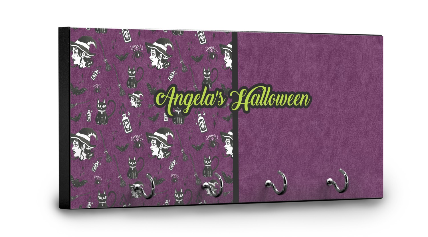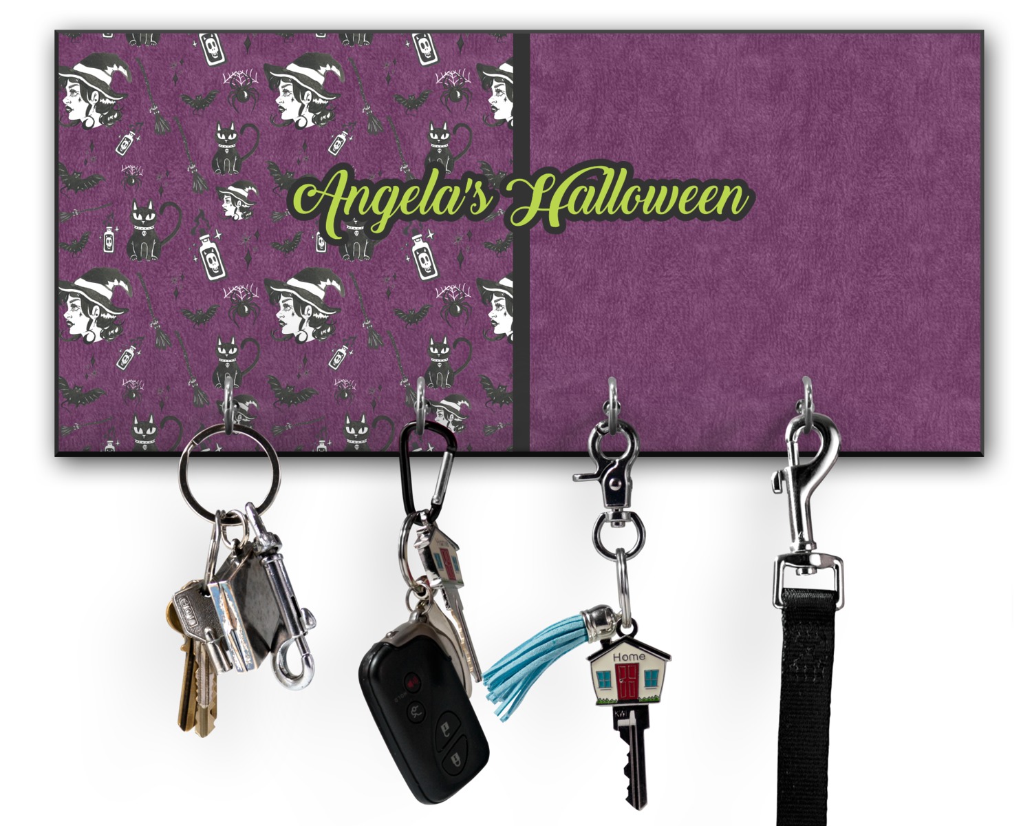 This 11" x 5" key hanger is made of sturdy wood and has four metal hooks lining the bottom. This is the perfect size for a family with several drivers. Not only can you hang keys on it though, but pet leashes and other small items. The board is black on the sides and back and is printed with the design of your choice on the front.