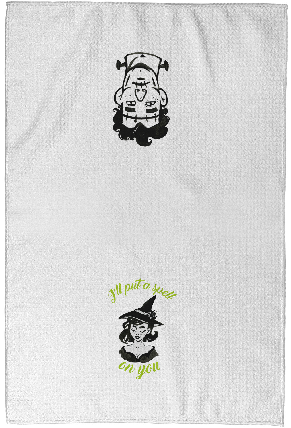 Each waffle weave kitchen towel is approximately 16 x 24 inches with your design printed on one side and the back is white.