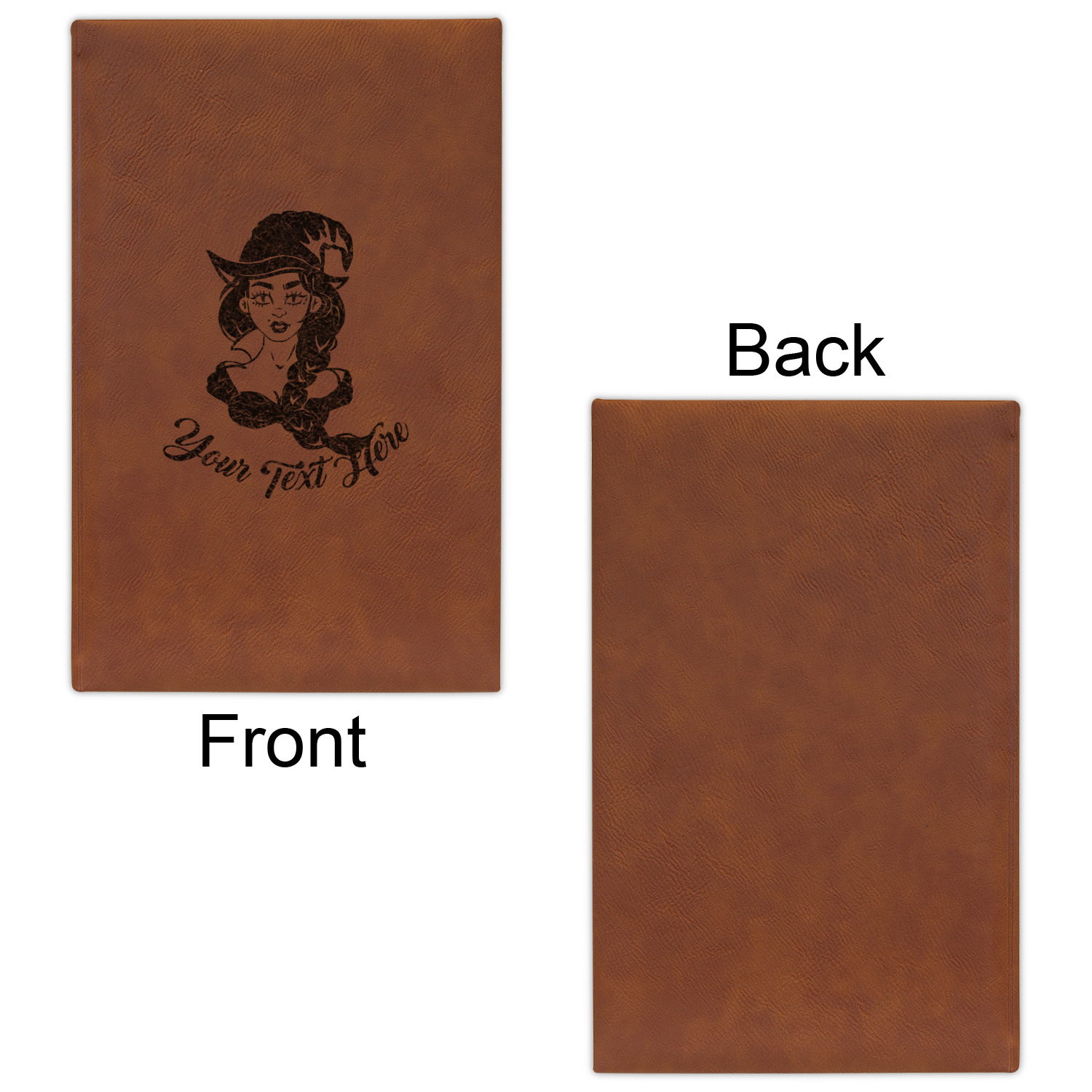 The faux leather covers are a rich cognac / rawhide color and can be customized with your design. From a simple name or monogram or a logo to a detailed mandala - the choice for customization & personalization is truly yours. Customize one of our designs or upload your own.