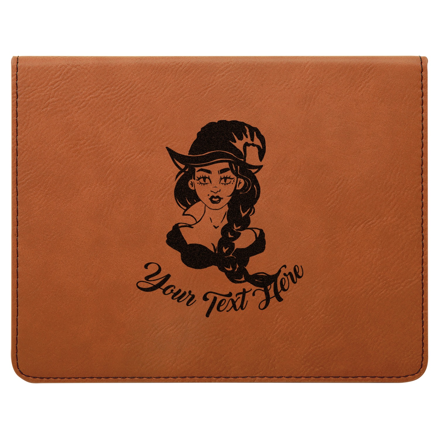 This fun design has a dark violet velvet looking (not real velvet - digital) background. On top of the digital velvet is a pattern full of beautiful illustrations of witches, potions, black cats, bats, and more. The main design is split in two with this background on one side and a plain violet digital velvet on the other. Your personalization is placed in the bottom right corner to give a lovely asymmetrical look. The coordinating design has a gorgeous large illustration of a witch with a little saying above and below her that says "I'll put a spell on you."
