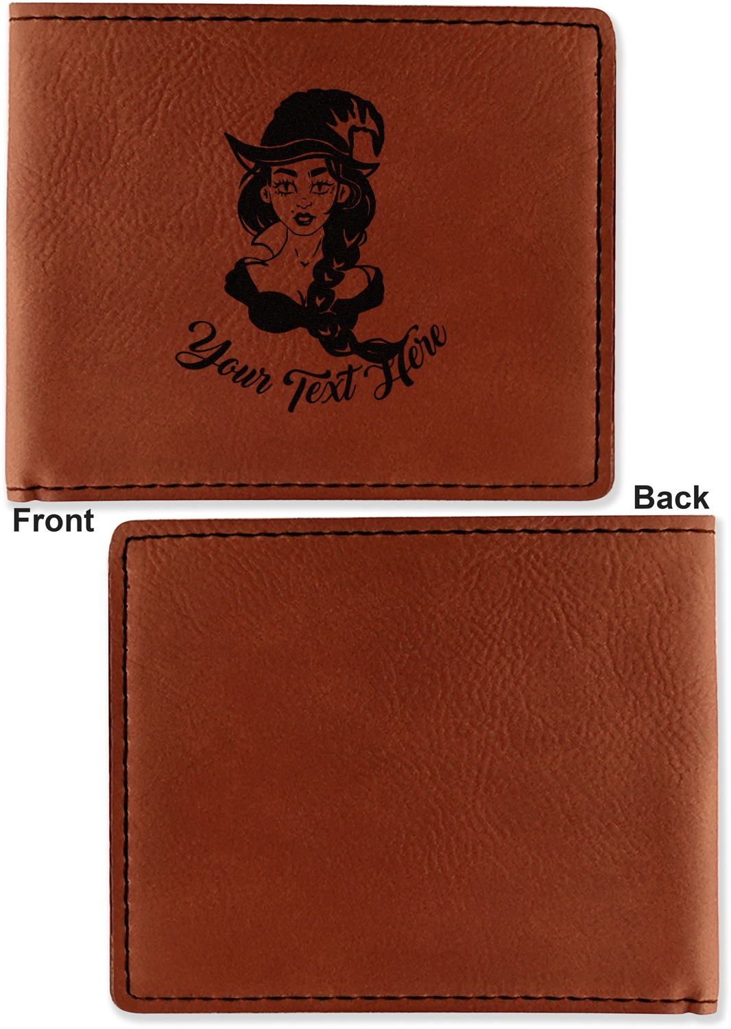 Your bifold wallet will be personalized by laser engraving, which will be a black color on the wallet. Choose a graphic, text, or monogram to personalize your wallet. There are thousands of choices in our design center.