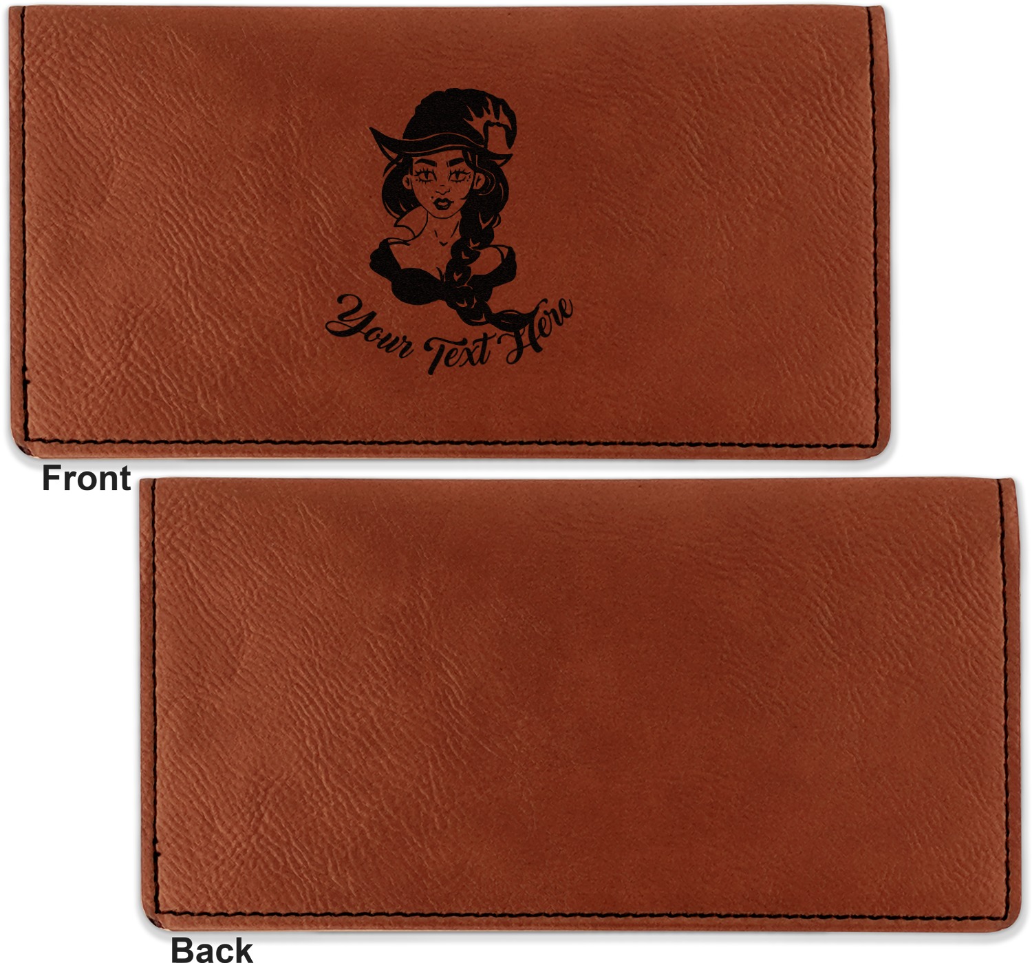 Go into our design center to start personalizing. Your checkbook cover will be laser engraved, making the graphic or text a black color. Choose a fun saying, monogram, or font to go on your checkbook cover. You have the opportunity to do it double or single sided.