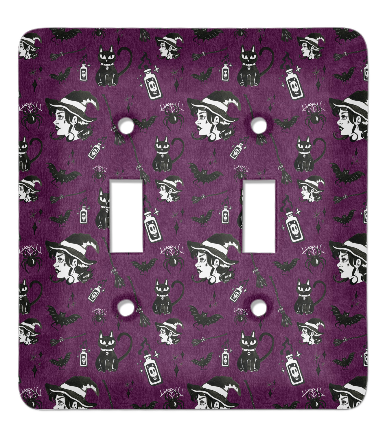 This fun design has a dark violet velvet looking (not real velvet - digital) background. On top of the digital velvet is a pattern full of beautiful illustrations of witches, potions, black cats, bats, and more. The main design is split in two with this background on one side and a plain violet digital velvet on the other. Your personalization is placed in the bottom right corner to give a lovely asymmetrical look. The coordinating design has a gorgeous large illustration of a witch with a little saying above and below her that says "I'll put a spell on you."