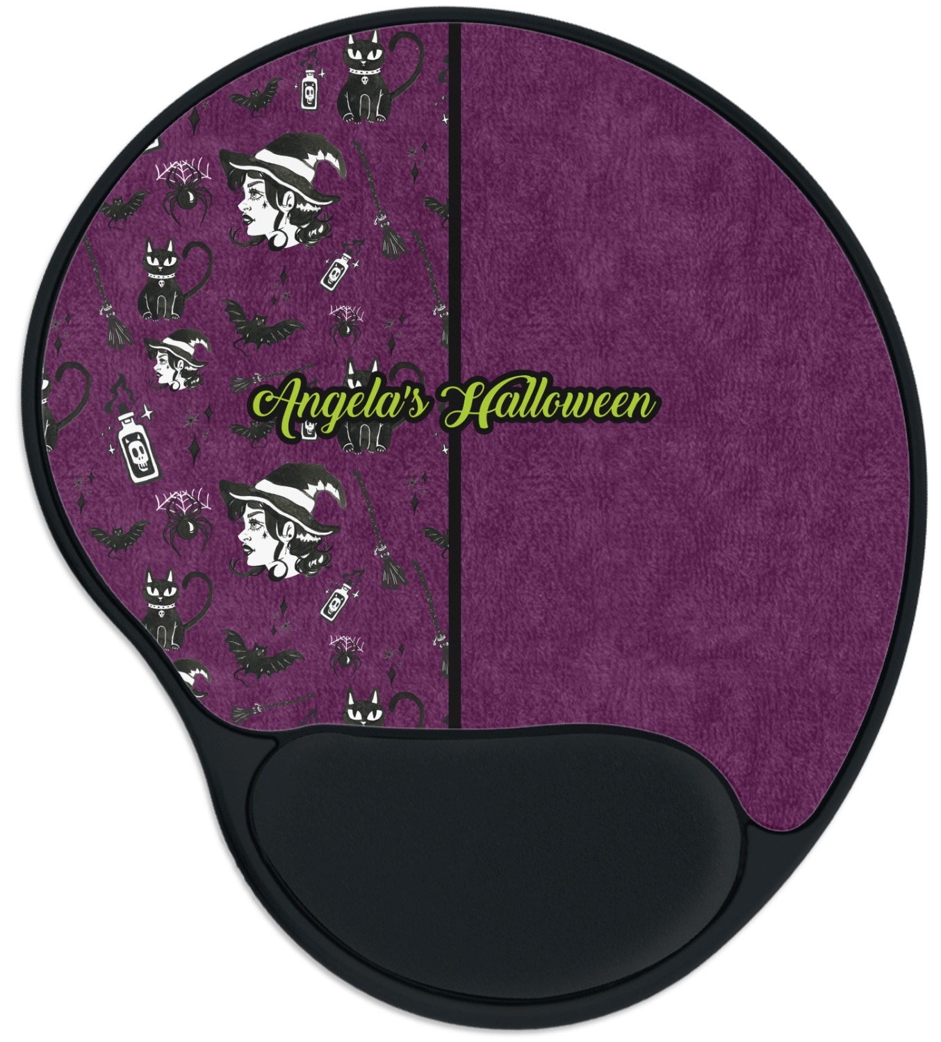The top of these personalized mouse pads are made from a polyester, while the underside is plastic. The back of these mouse mats include rubber feet to prevent any slippage while in use. A padded wrist support, made from plush memory foam, occupies the bottom section of these computer mouse pads. Your customized design is printed onto the face of this mat, with the remaining sides and support piece colored in black. The mat itself is rounded and measures at 10.25" x 9.13".