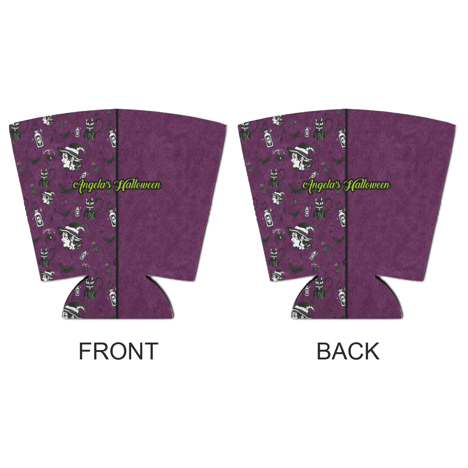 This fun design has a dark violet velvet looking (not real velvet - digital) background. On top of the digital velvet is a pattern full of beautiful illustrations of witches, potions, black cats, bats, and more. The main design is split in two with this background on one side and a plain violet digital velvet on the other. Your personalization is placed in the bottom right corner to give a lovely asymmetrical look. The coordinating design has a gorgeous large illustration of a witch with a little saying above and below her that says "I'll put a spell on you."