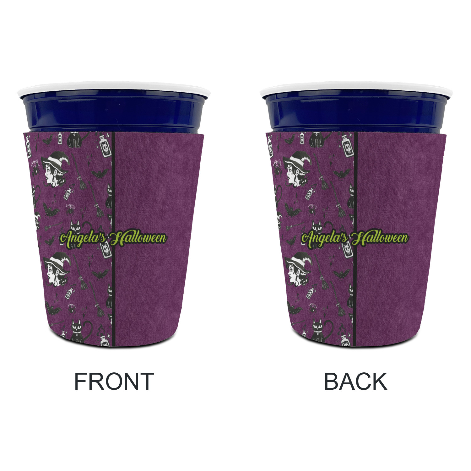 Made from neoprene with a polyester outer fabric and sewn seams, these premium quality party cup sleeves are very durable and will hold up to heavy use. They are available in 2 styles - with a bottom or just a sleeve to go around the outside of the tapered cup. The sleeve covers are about 4" tall and cover about 90% of the classic 16 oz. Solo cup.