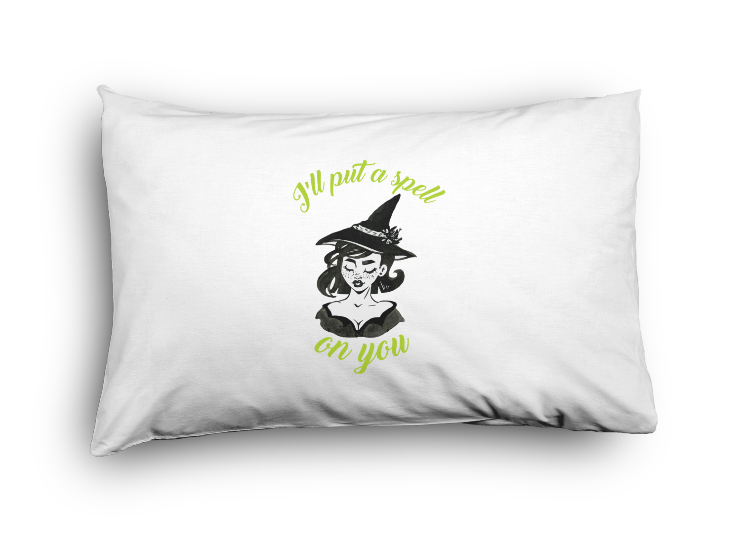 This fun design has a dark violet velvet looking (not real velvet - digital) background. On top of the digital velvet is a pattern full of beautiful illustrations of witches, potions, black cats, bats, and more. The main design is split in two with this background on one side and a plain violet digital velvet on the other. Your personalization is placed in the bottom right corner to give a lovely asymmetrical look. The coordinating design has a gorgeous large illustration of a witch with a little saying above and below her that says "I'll put a spell on you."