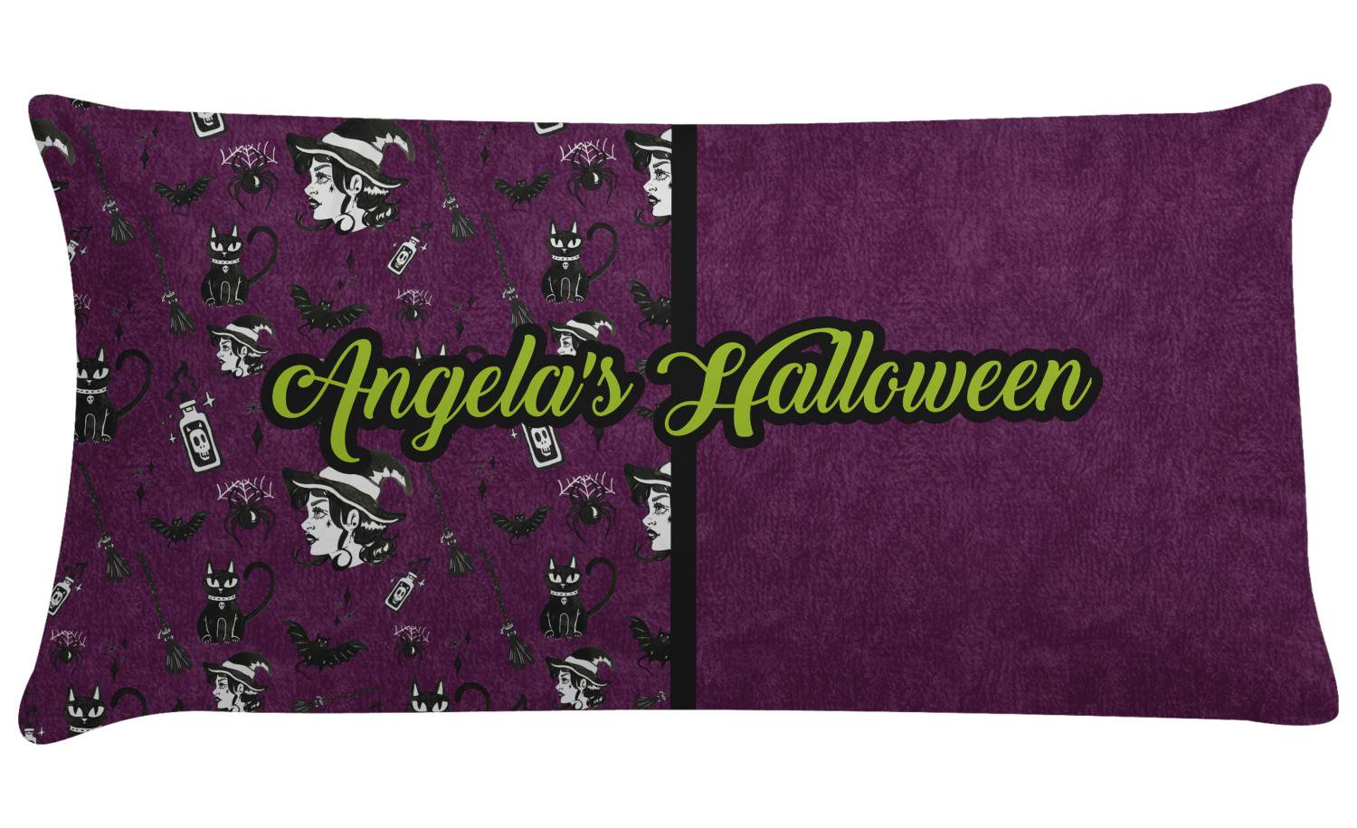 This fun design has a dark violet velvet looking (not real velvet - digital) background. On top of the digital velvet is a pattern full of beautiful illustrations of witches, potions, black cats, bats, and more. The main design is split in two with this background on one side and a plain violet digital velvet on the other. Your personalization is placed in the bottom right corner to give a lovely asymmetrical look. The coordinating design has a gorgeous large illustration of a witch with a little saying above and below her that says "I'll put a spell on you."