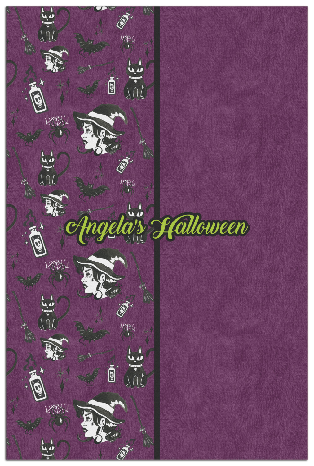 This fun design has a dark violet velvet looking (not real velvet - digital) background. On top of the digital velvet is a pattern full of beautiful illustrations of witches, potions, black cats, bats, and more. The main design is split in two with this background on one side and a plain violet digital velvet on the other. Your personalization is placed in the bottom right corner to give a lovely asymmetrical look. The coordinating design has a gorgeous large illustration of a witch with a little saying above and below her that says "I'll put a spell on you."