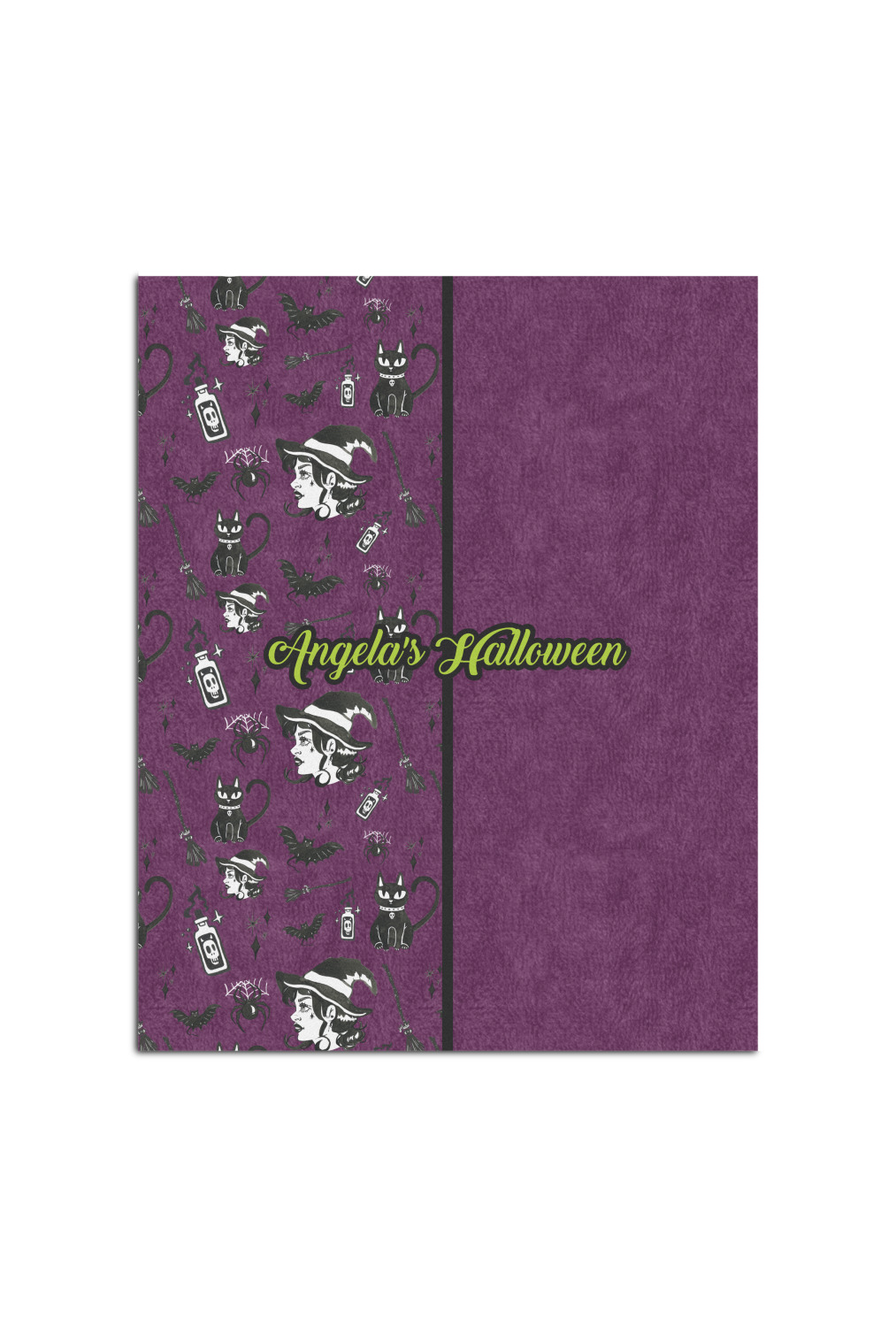This fun design has a dark violet velvet looking (not real velvet - digital) background. On top of the digital velvet is a pattern full of beautiful illustrations of witches, potions, black cats, bats, and more. The main design is split in two with this background on one side and a plain violet digital velvet on the other. Your personalization is placed in the bottom right corner to give a lovely asymmetrical look. The coordinating design has a gorgeous large illustration of a witch with a little saying above and below her that says "I'll put a spell on you."