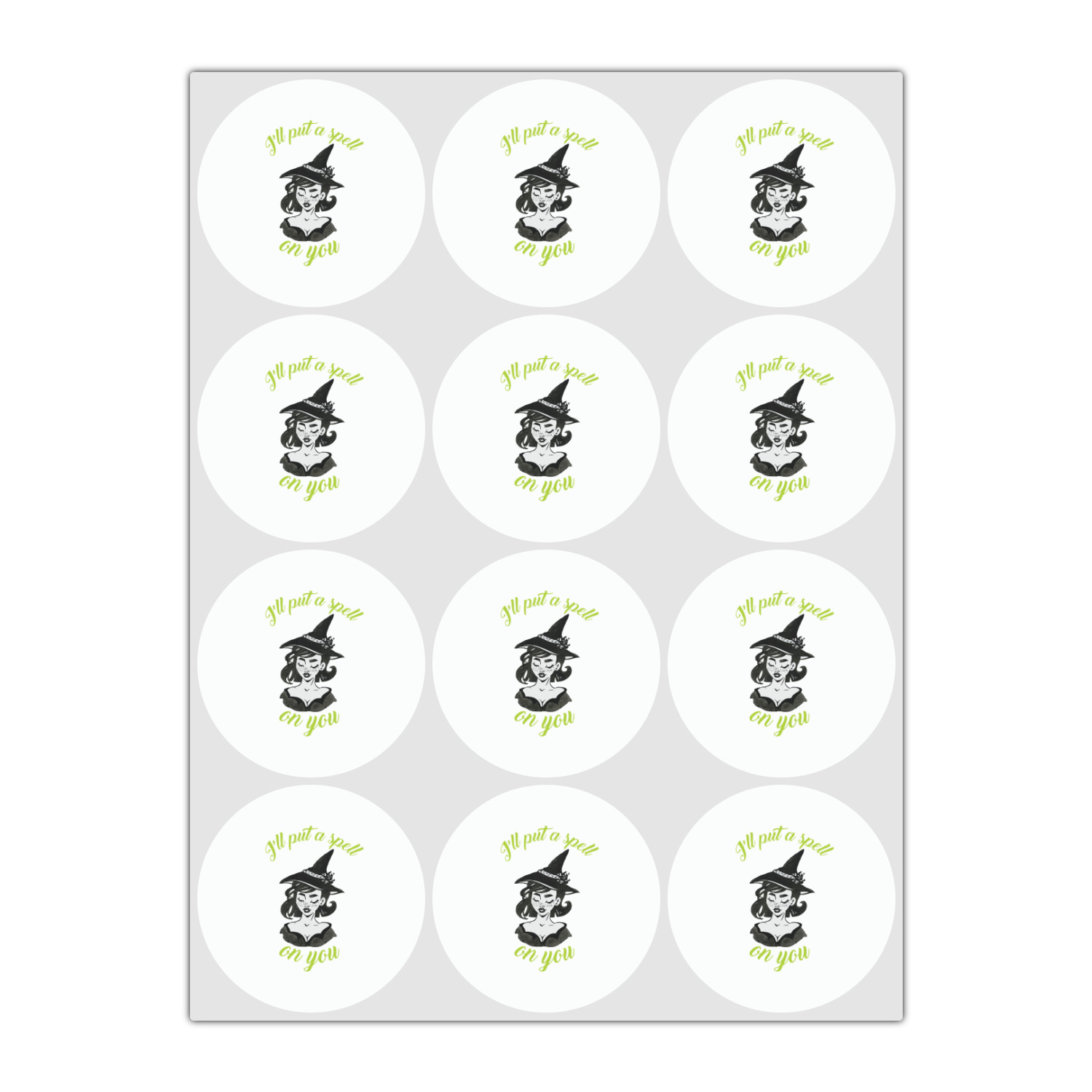 This fun design has a dark violet velvet looking (not real velvet - digital) background. On top of the digital velvet is a pattern full of beautiful illustrations of witches, potions, black cats, bats, and more. The main design is split in two with this background on one side and a plain violet digital velvet on the other. Your personalization is placed in the bottom right corner to give a lovely asymmetrical look. The coordinating design has a gorgeous large illustration of a witch with a little saying above and below her that says "I'll put a spell on you."