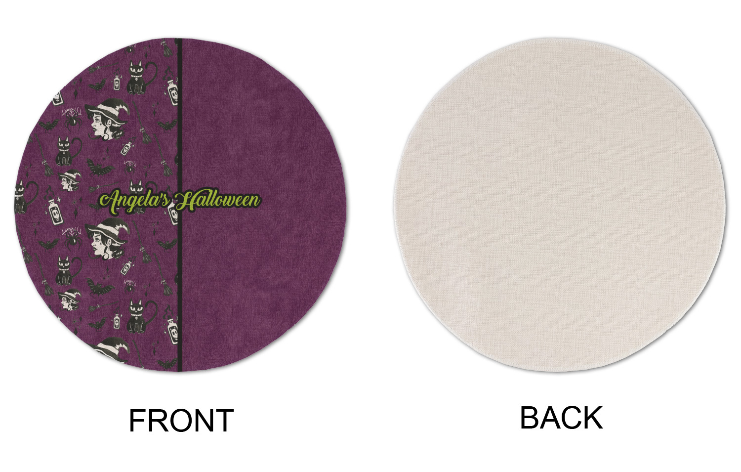 This fun design has a dark violet velvet looking (not real velvet - digital) background. On top of the digital velvet is a pattern full of beautiful illustrations of witches, potions, black cats, bats, and more. The main design is split in two with this background on one side and a plain violet digital velvet on the other. Your personalization is placed in the bottom right corner to give a lovely asymmetrical look. The coordinating design has a gorgeous large illustration of a witch with a little saying above and below her that says "I'll put a spell on you."