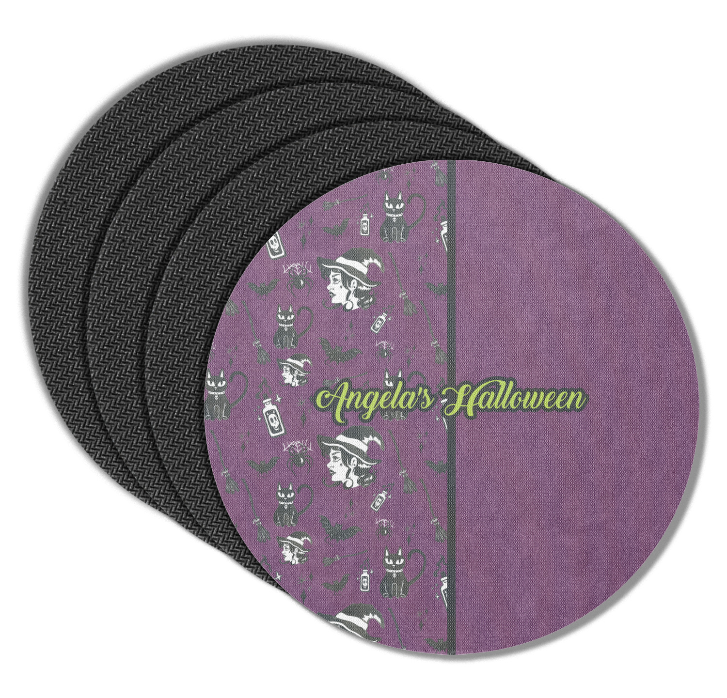 These drink coasters have a smooth, polyester top and a textured, rubber backing on its bottom. The non-slip rubber backing underneath works to keep any spills at bay. At 4 by 4 by 0.25 inches thick, these custom coasters are a suitable size for most drinkware. Your personalization is displayed atop the face of the cup coaster. We sell these rubber coasters in two different shapes: square and round. You can buy each shape as singulars or as a set of 4.