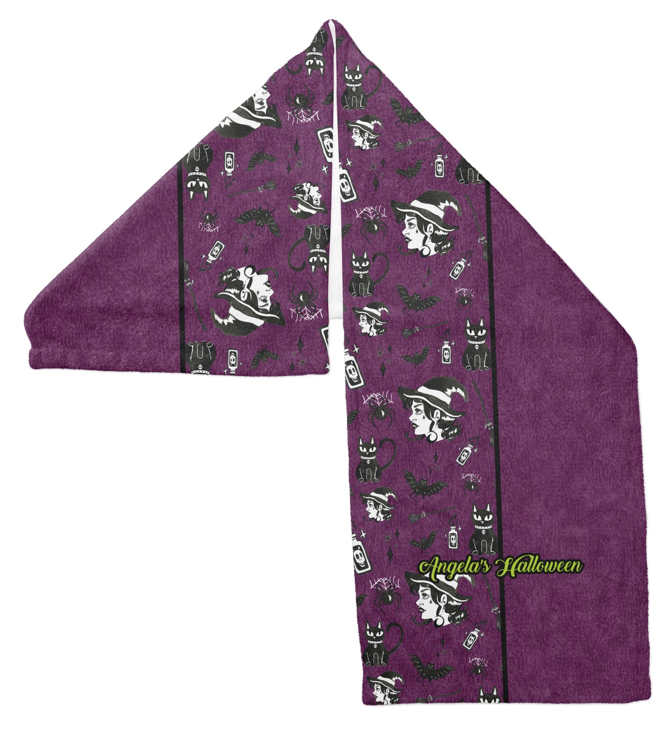 This fun design has a dark violet velvet looking (not real velvet - digital) background. On top of the digital velvet is a pattern full of beautiful illustrations of witches, potions, black cats, bats, and more. The main design is split in two with this background on one side and a plain violet digital velvet on the other. Your personalization is placed in the bottom right corner to give a lovely asymmetrical look. The coordinating design has a gorgeous large illustration of a witch with a little saying above and below her that says "I'll put a spell on you."