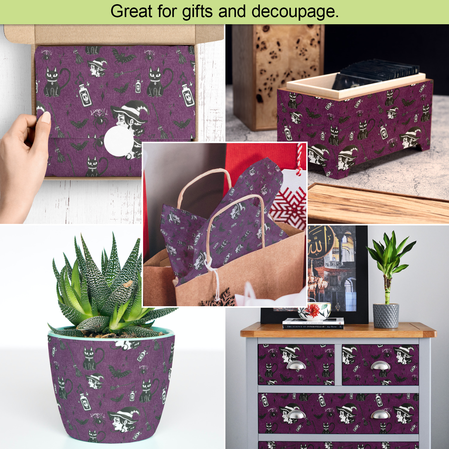 Our tissue paper sheets are also perfect for decoupage i.e. the art of gluing paper on ordinary objects to decorate them.