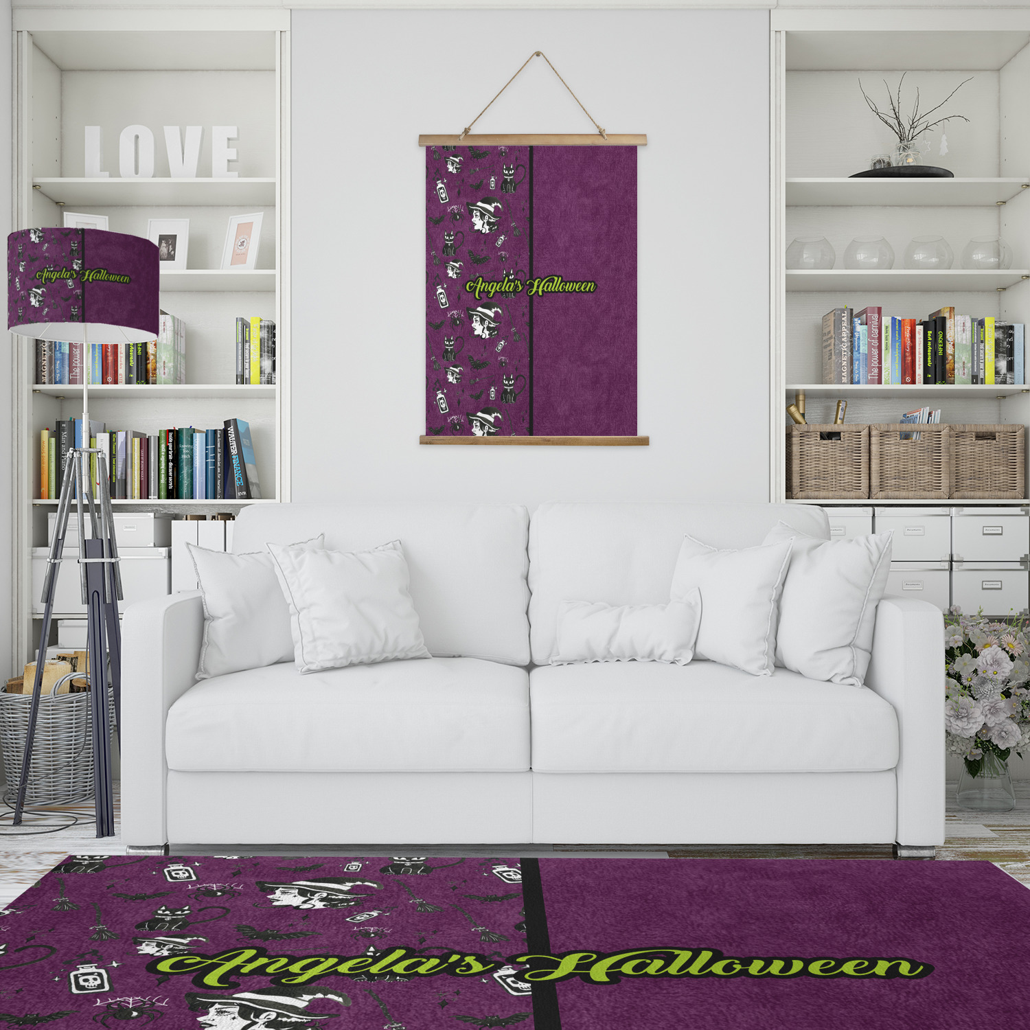 This fun design has a dark violet velvet looking (not real velvet - digital) background. On top of the digital velvet is a pattern full of beautiful illustrations of witches, potions, black cats, bats, and more. The main design is split in two with this background on one side and a plain violet digital velvet on the other. Your personalization is placed in the bottom right corner to give a lovely asymmetrical look. The coordinating design has a gorgeous large illustration of a witch with a little saying above and below her that says "I'll put a spell on you."