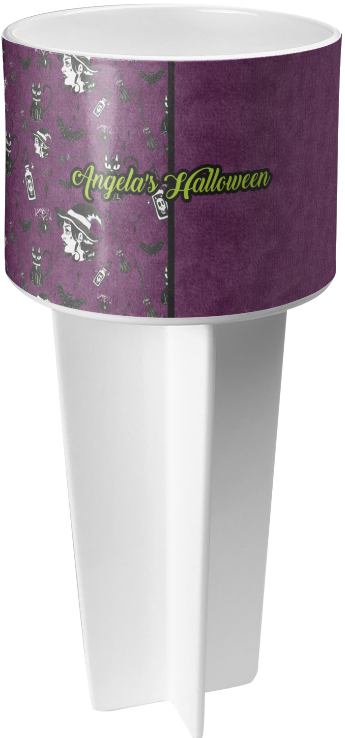 This cup holder has a large stake at its bottom that anchors it to the sand or ground below, while the cup holder rests above the stake. The entire drink holder is made of durable plastic and displays your customization around the cup holder portion. We sell these personalized beach spikers in two different colors: black and white.