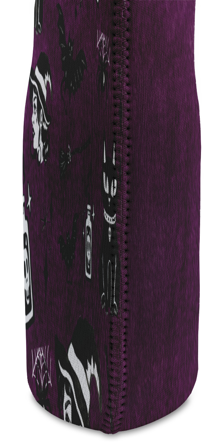 This fun design has a dark violet velvet looking (not real velvet - digital) background. On top of the digital velvet is a pattern full of beautiful illustrations of witches, potions, black cats, bats, and more. The main design is split in two with this background on one side and a plain violet digital velvet on the other. Your personalization is placed in the bottom right corner to give a lovely asymmetrical look. The coordinating design has a gorgeous large illustration of a witch with a little saying above and below her that says "I'll put a spell on you."