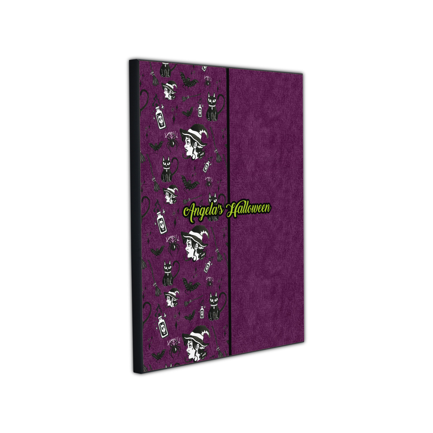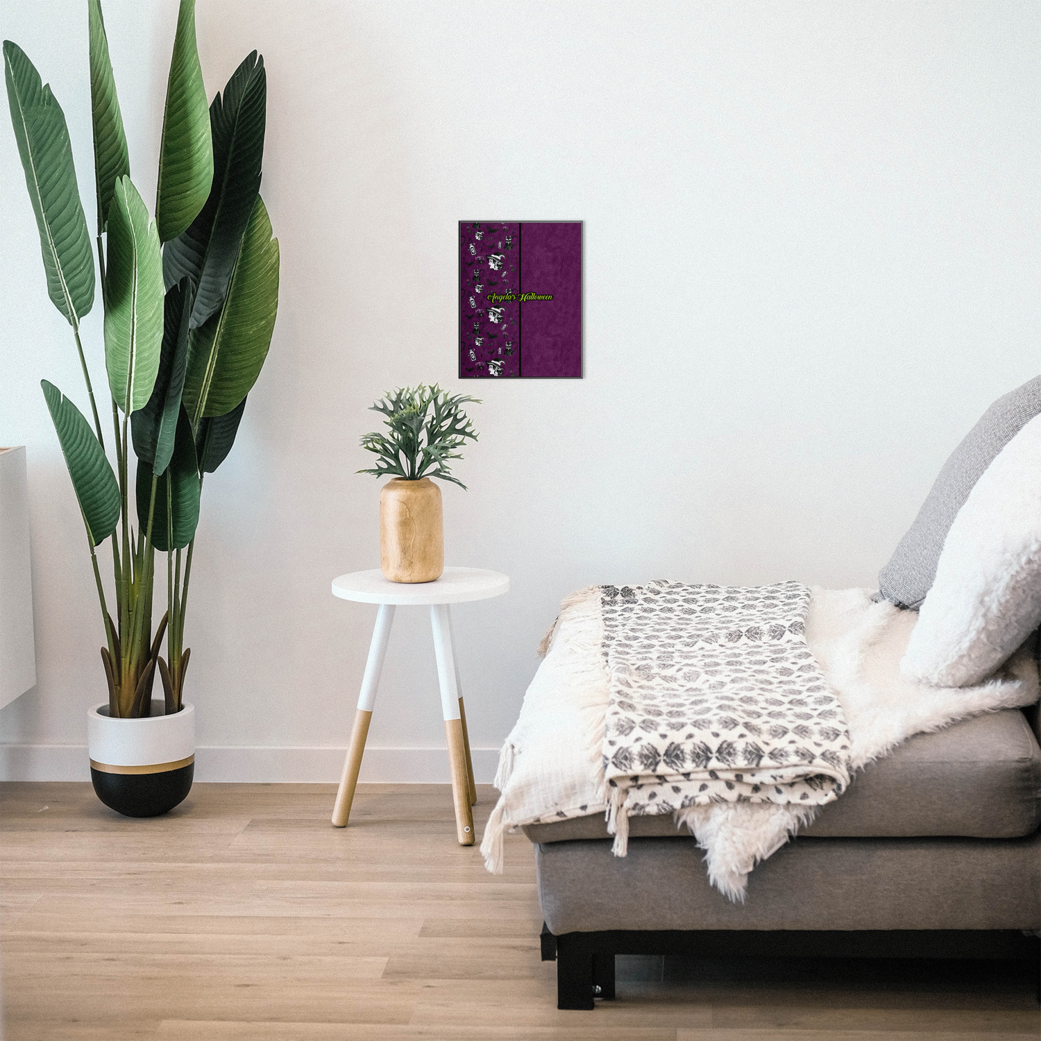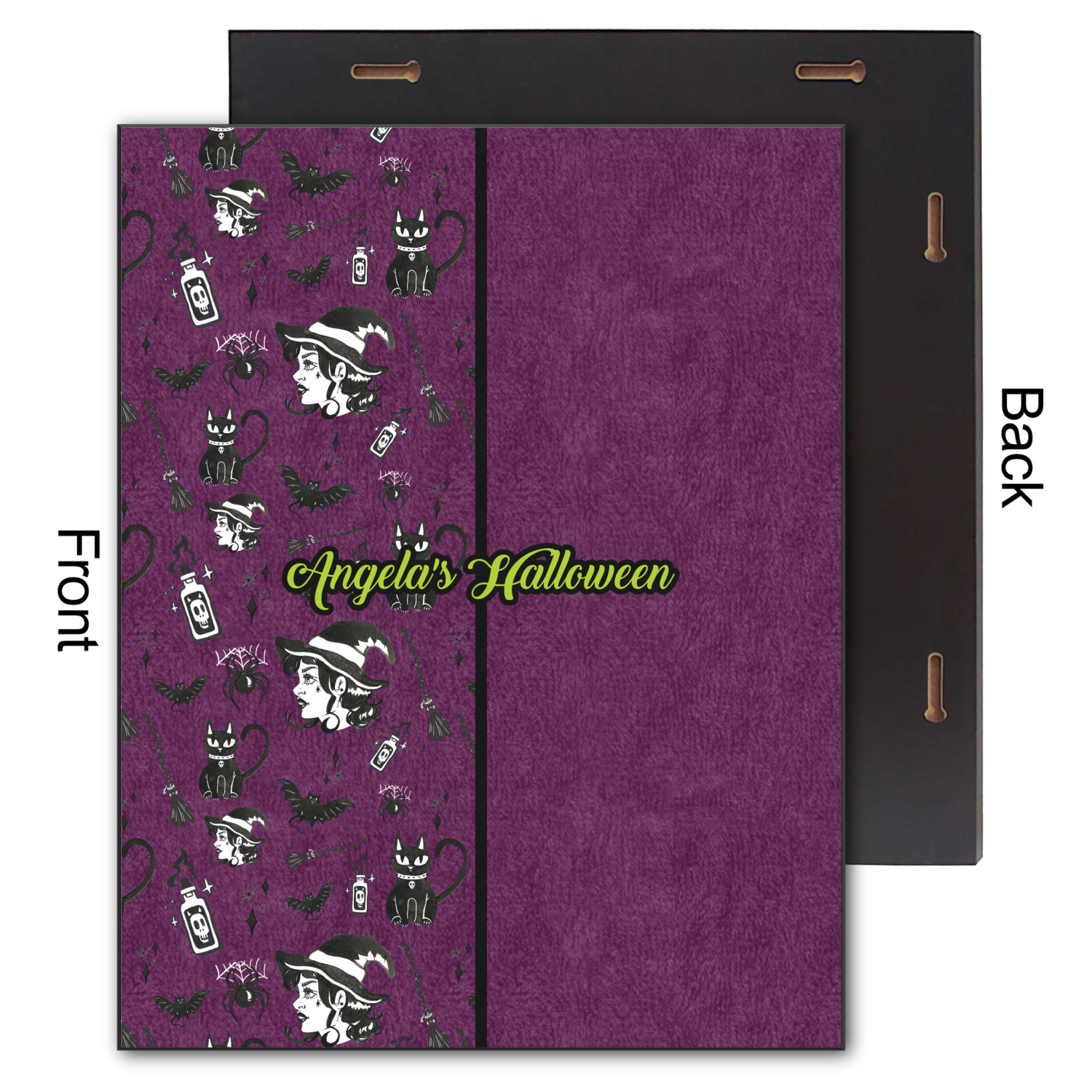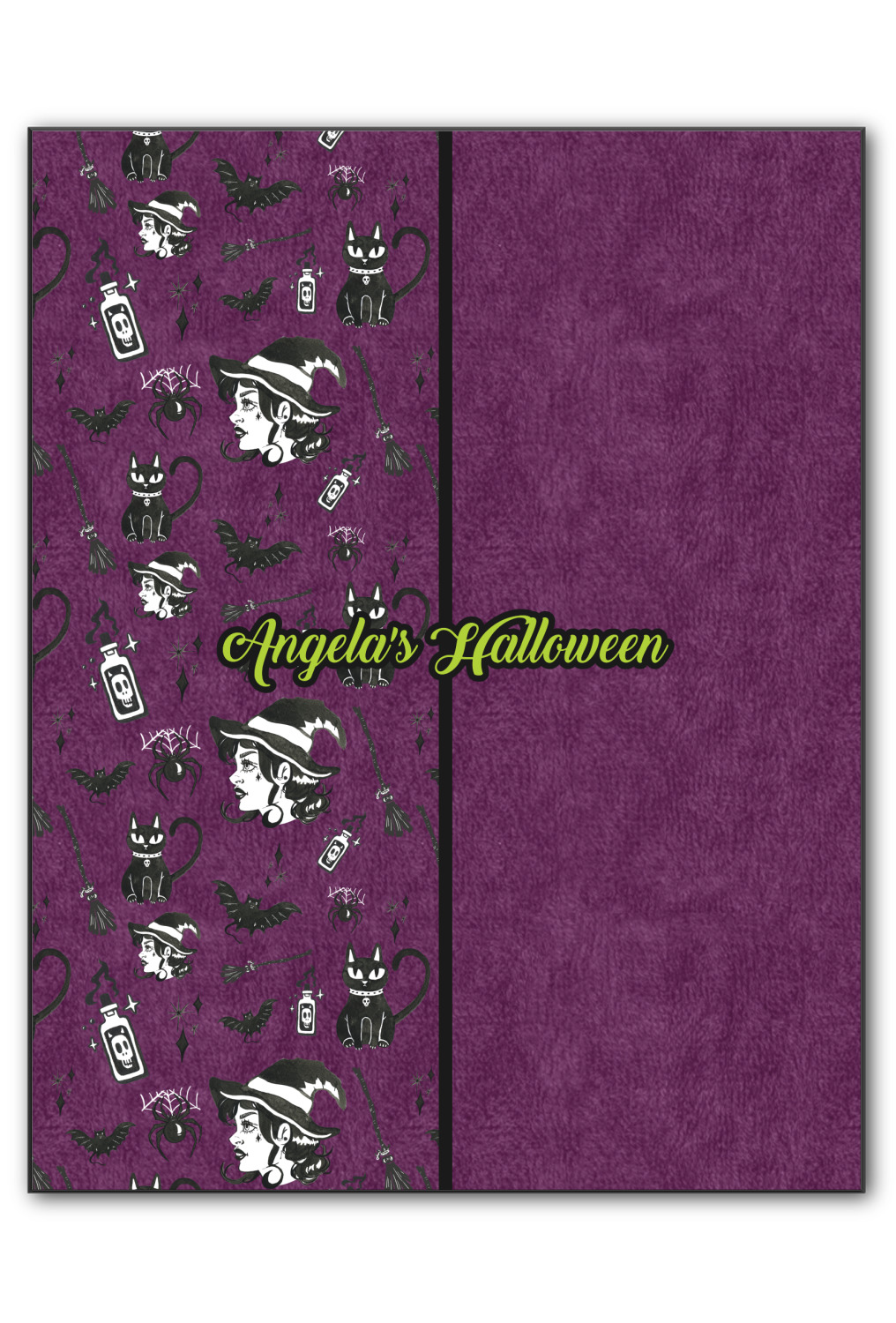 This fun design has a dark violet velvet looking (not real velvet - digital) background. On top of the digital velvet is a pattern full of beautiful illustrations of witches, potions, black cats, bats, and more. The main design is split in two with this background on one side and a plain violet digital velvet on the other. Your personalization is placed in the bottom right corner to give a lovely asymmetrical look. The coordinating design has a gorgeous large illustration of a witch with a little saying above and below her that says "I'll put a spell on you."