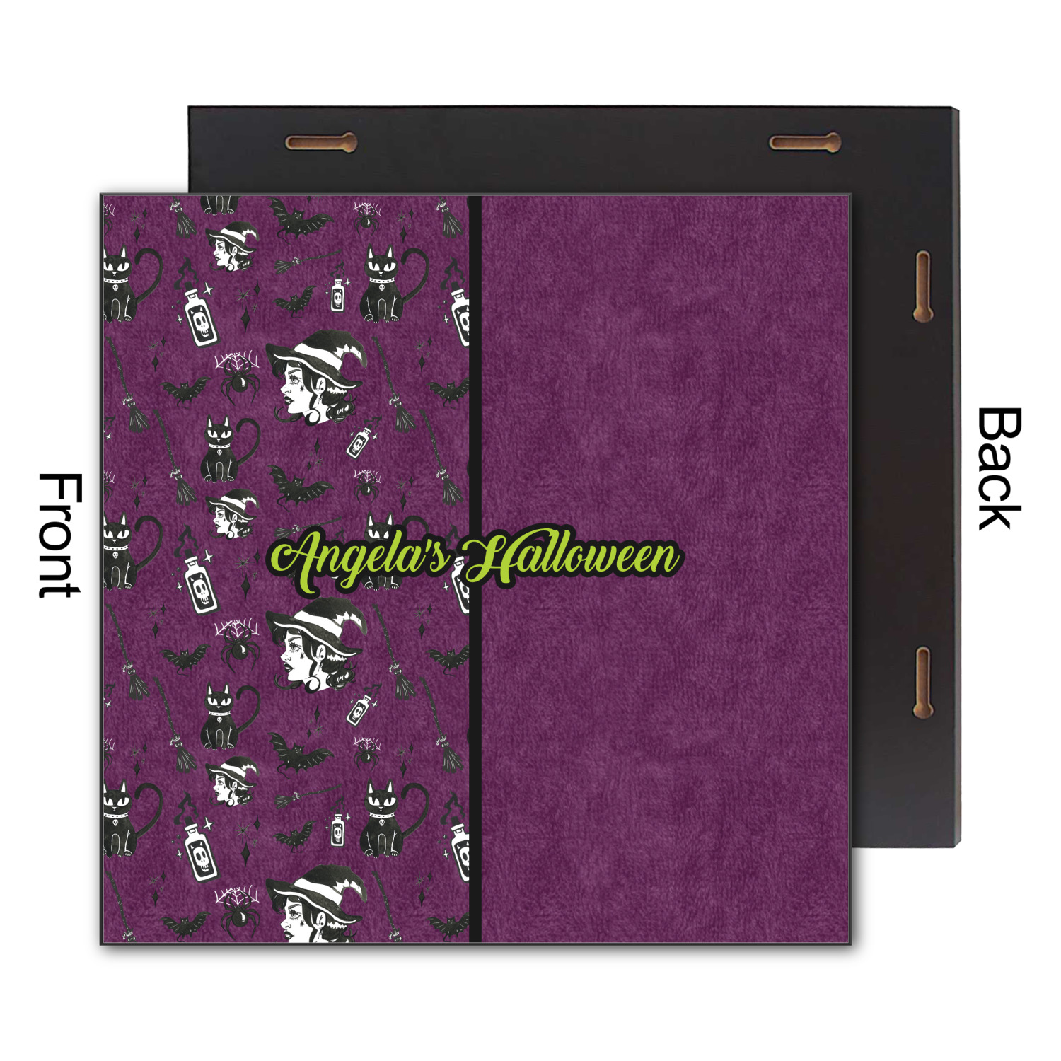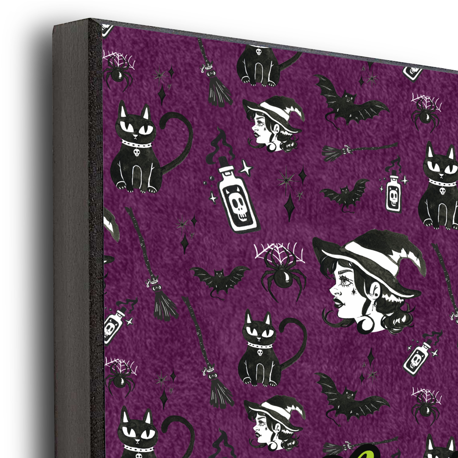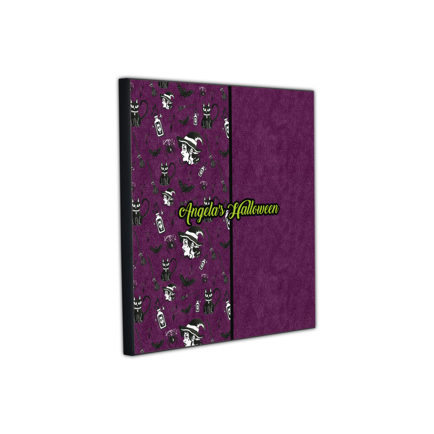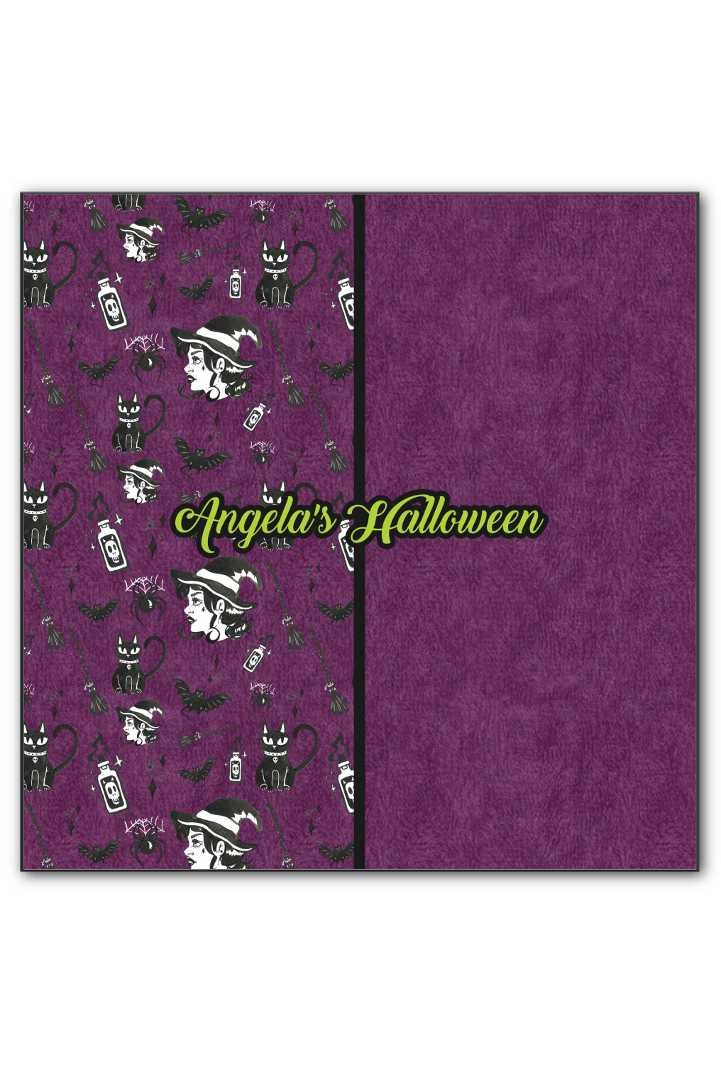 This fun design has a dark violet velvet looking (not real velvet - digital) background. On top of the digital velvet is a pattern full of beautiful illustrations of witches, potions, black cats, bats, and more. The main design is split in two with this background on one side and a plain violet digital velvet on the other. Your personalization is placed in the bottom right corner to give a lovely asymmetrical look. The coordinating design has a gorgeous large illustration of a witch with a little saying above and below her that says "I'll put a spell on you."