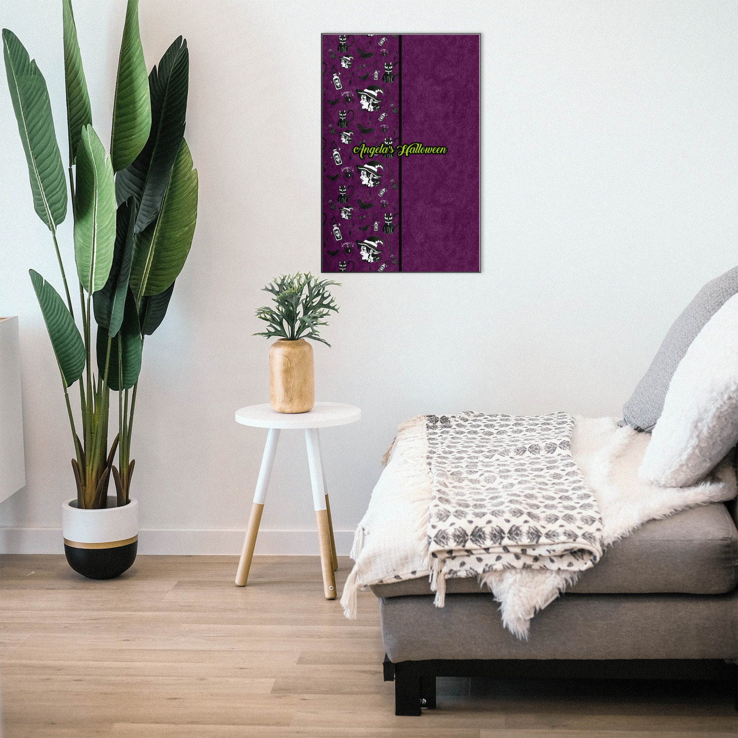 This fun design has a dark violet velvet looking (not real velvet - digital) background. On top of the digital velvet is a pattern full of beautiful illustrations of witches, potions, black cats, bats, and more. The main design is split in two with this background on one side and a plain violet digital velvet on the other. Your personalization is placed in the bottom right corner to give a lovely asymmetrical look. The coordinating design has a gorgeous large illustration of a witch with a little saying above and below her that says "I'll put a spell on you."