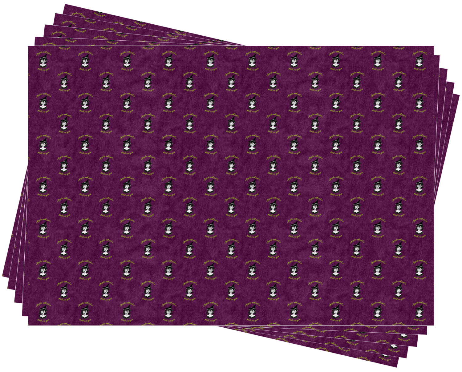 This fun design has a dark violet velvet looking (not real velvet - digital) background. On top of the digital velvet is a pattern full of beautiful illustrations of witches, potions, black cats, bats, and more. The main design is split in two with this background on one side and a plain violet digital velvet on the other. Your personalization is placed in the bottom right corner to give a lovely asymmetrical look. The coordinating design has a gorgeous large illustration of a witch with a little saying above and below her that says "I'll put a spell on you."