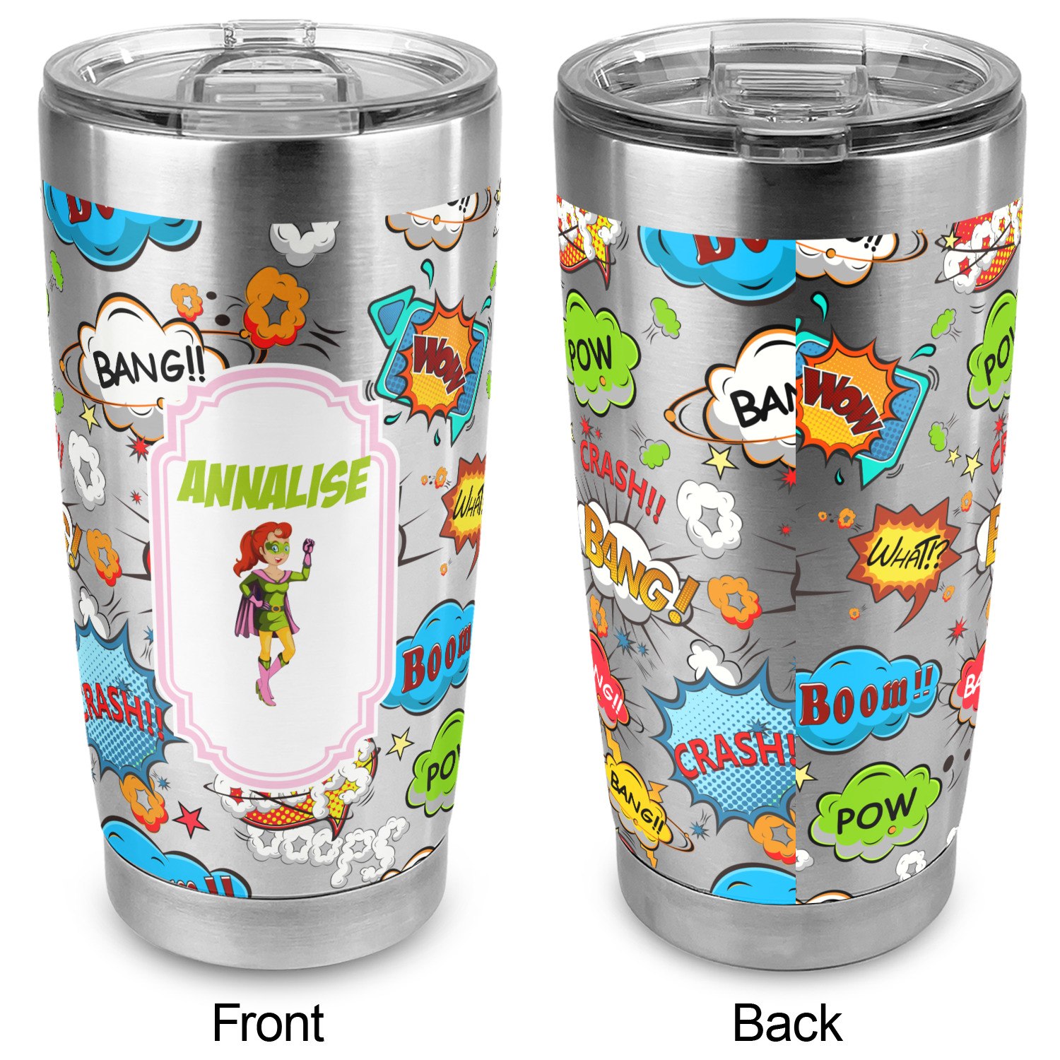 This design was made especially for us women superheroes! The design features a pink superhero background. This background is re-color-able so you can choose any color you want - we chose a girl pink. The design also features a superwoman hero. To cape or not to cape for a superhero is the question - so we offer 7 different super hero women for you to choose from - some with capes and some without - the choice is yours.