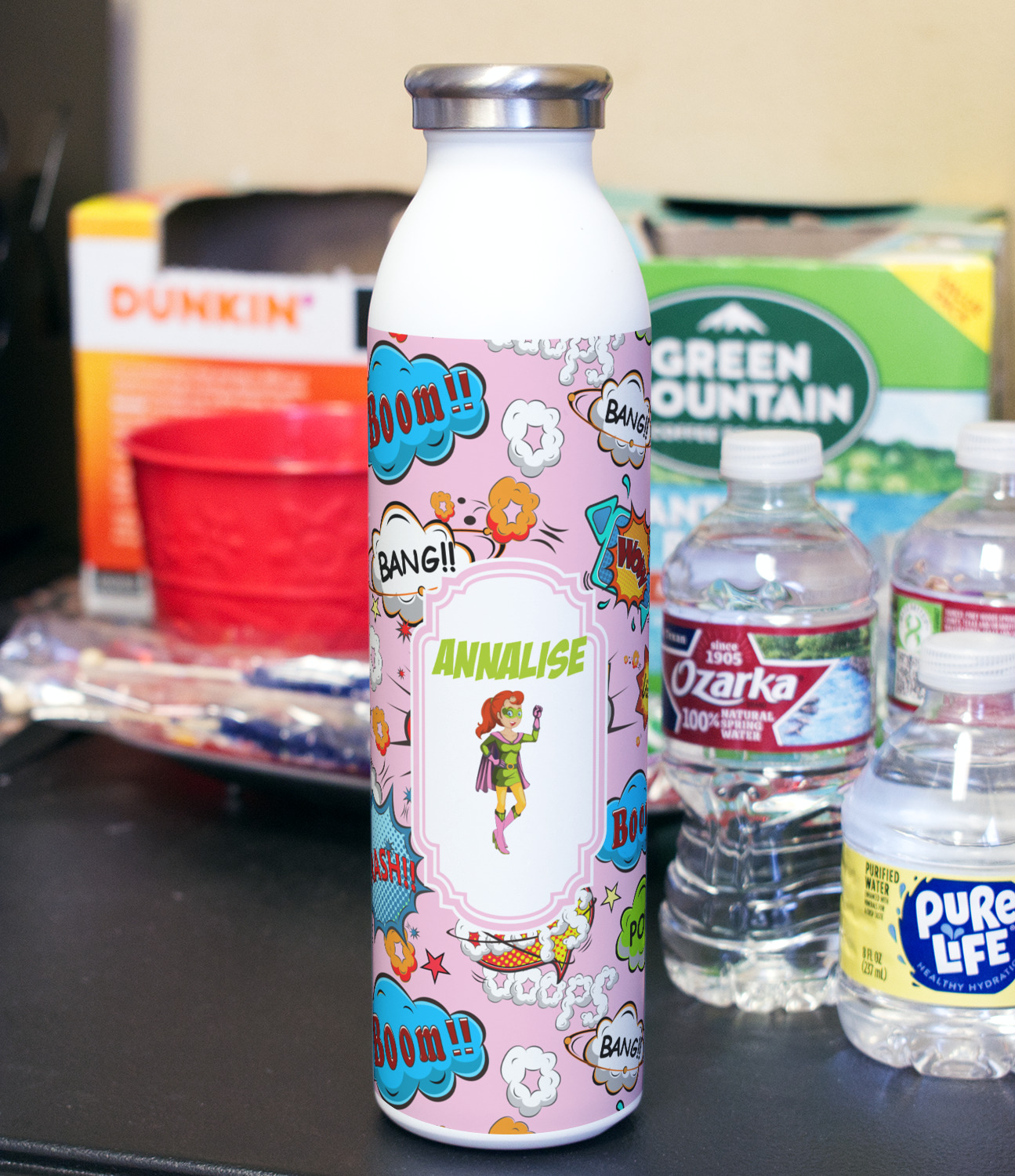 With the double wall insulated construction this bottle will keep drinks cold for 24 hours and hot for 12 hours. The large size allows for a beautiful large artwork space to allow you to make this bottle all your own.