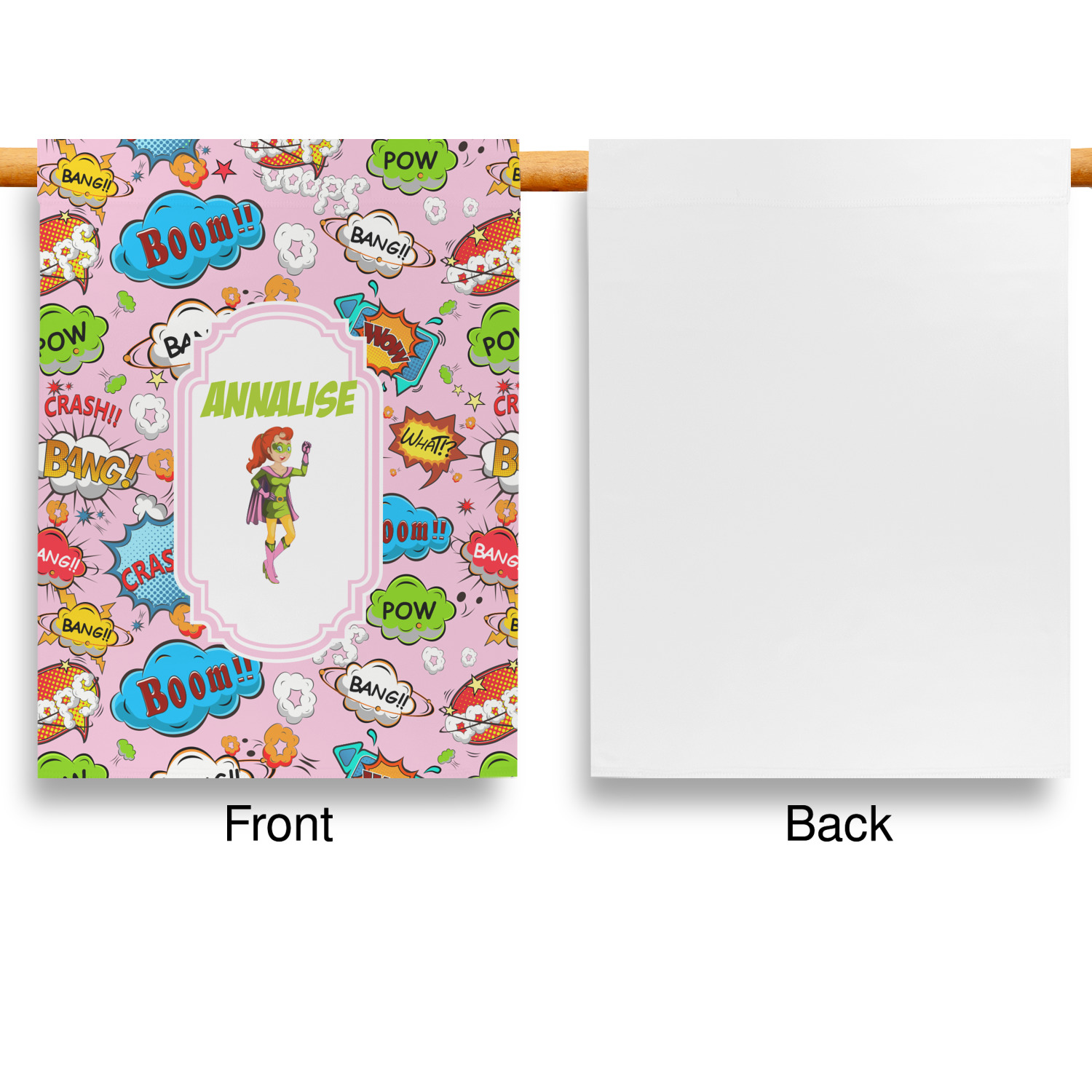 Made from heavy weight polyester fabric, these flags can be printed on one or both sides. They measure 28" wide by 37" long. They can be made to welcome guests, celebrate holidays, show your pride and so much more!