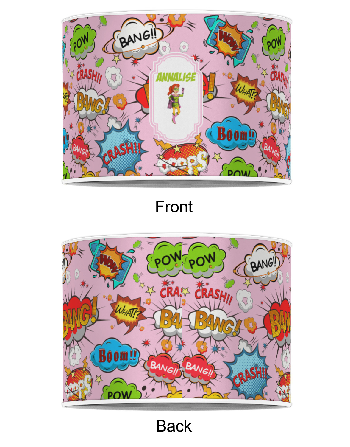 Our customized lamp shades also come in 3 different sizes: 8", 12" and 16", measuring at 8" in diameter by 6" tall, 12" in diameter by 8" tall, and 16" in diameter by 10" tall, respectively.
