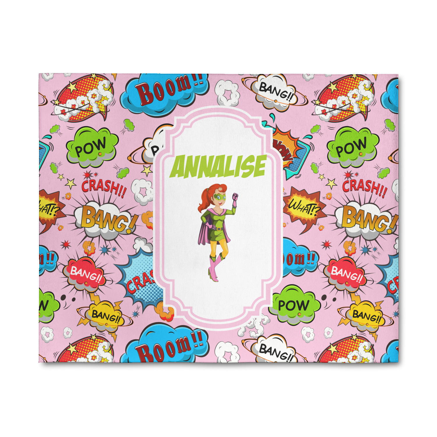 All our superhero women are fully re-color-able - so not only do you decide what color clothes they are wearing, you get to select their hair and skin color as well. So try out our customization system and see what you come up with. We chose a tall frame with the personalization on the top and colored it in matching pink.