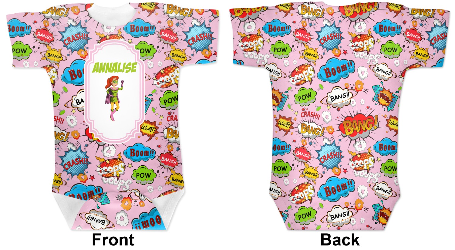 These cute baby bodysuits are made of stretchy, soft-to-the-touch polyester, making them very comfortable for your baby. These baby bodysuits also have snaps on the bottom to give easy access during changing times. Your personalization covers the entirety of this custom baby bodysuit, but the interior is white in color. As these are unisex baby bodysuits, they will work perfectly as baby girl bodysuits and baby boy bodysuits!
