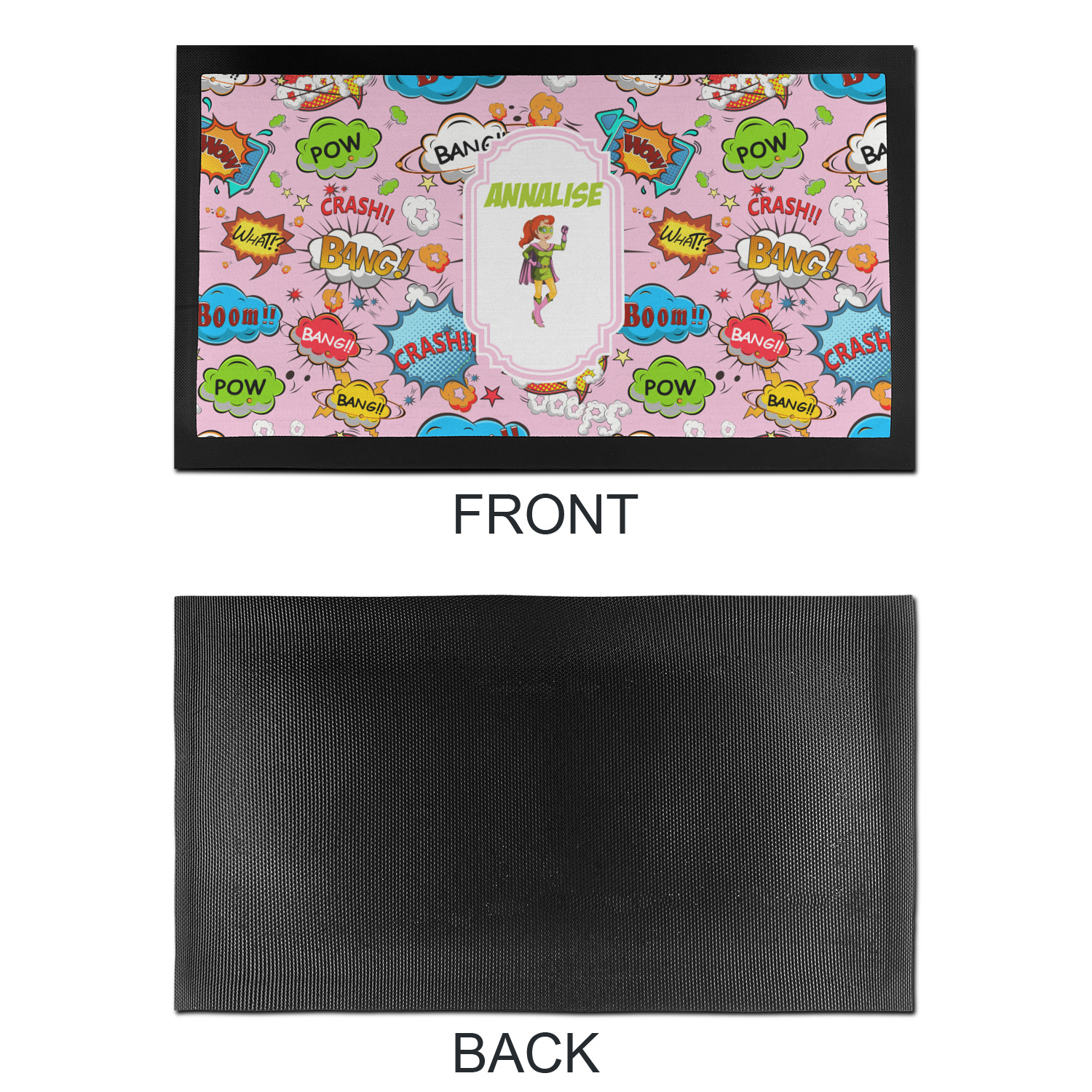 All our superhero women are fully re-color-able - so not only do you decide what color clothes they are wearing, you get to select their hair and skin color as well. So try out our customization system and see what you come up with. We chose a tall frame with the personalization on the top and colored it in matching pink.
