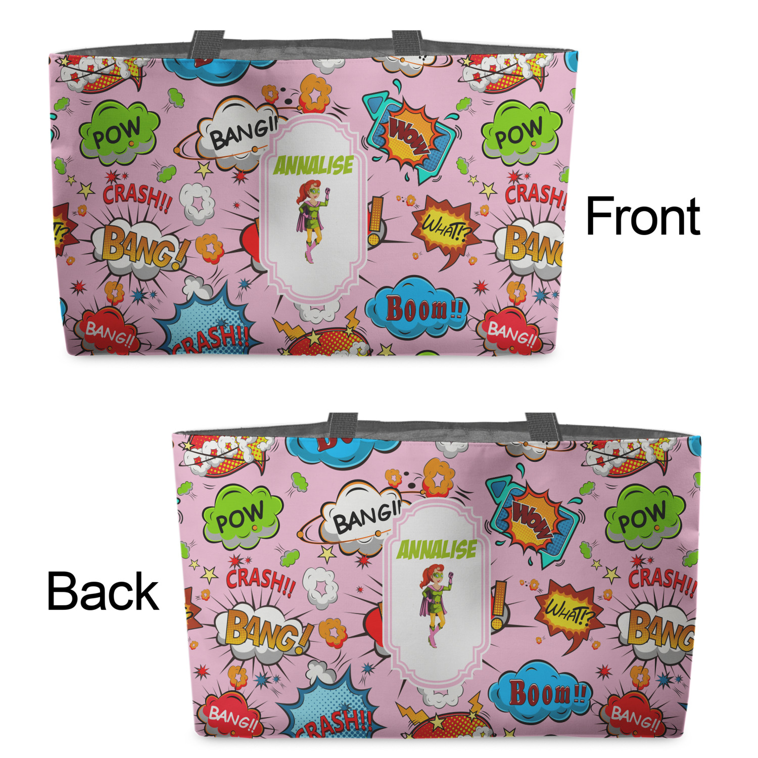 These beach tote bags are perfect for all the items you would need when heading down to the beach - items such as bathing suits, beach towels, beach spiker drink holders, sun glasses, sunscreen, etc. The large 5" gusset on the bottom, along with the 24" wide opening provide a nice size to fit all you beach needs.