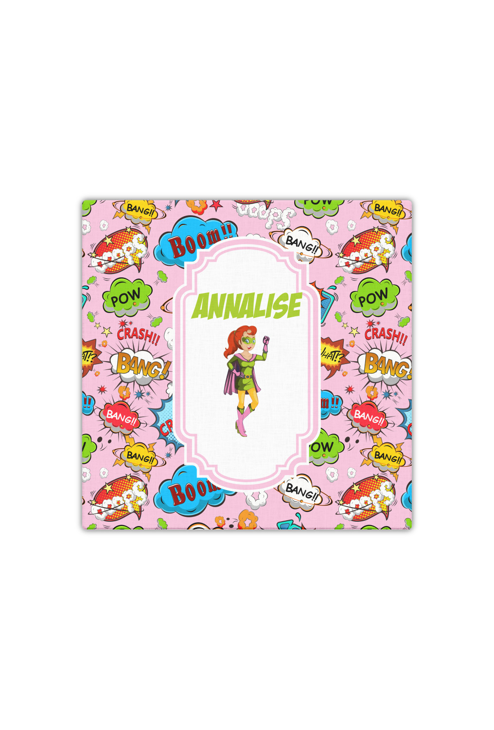 All our superhero women are fully re-color-able - so not only do you decide what color clothes they are wearing, you get to select their hair and skin color as well. So try out our customization system and see what you come up with. We chose a tall frame with the personalization on the top and colored it in matching pink.
