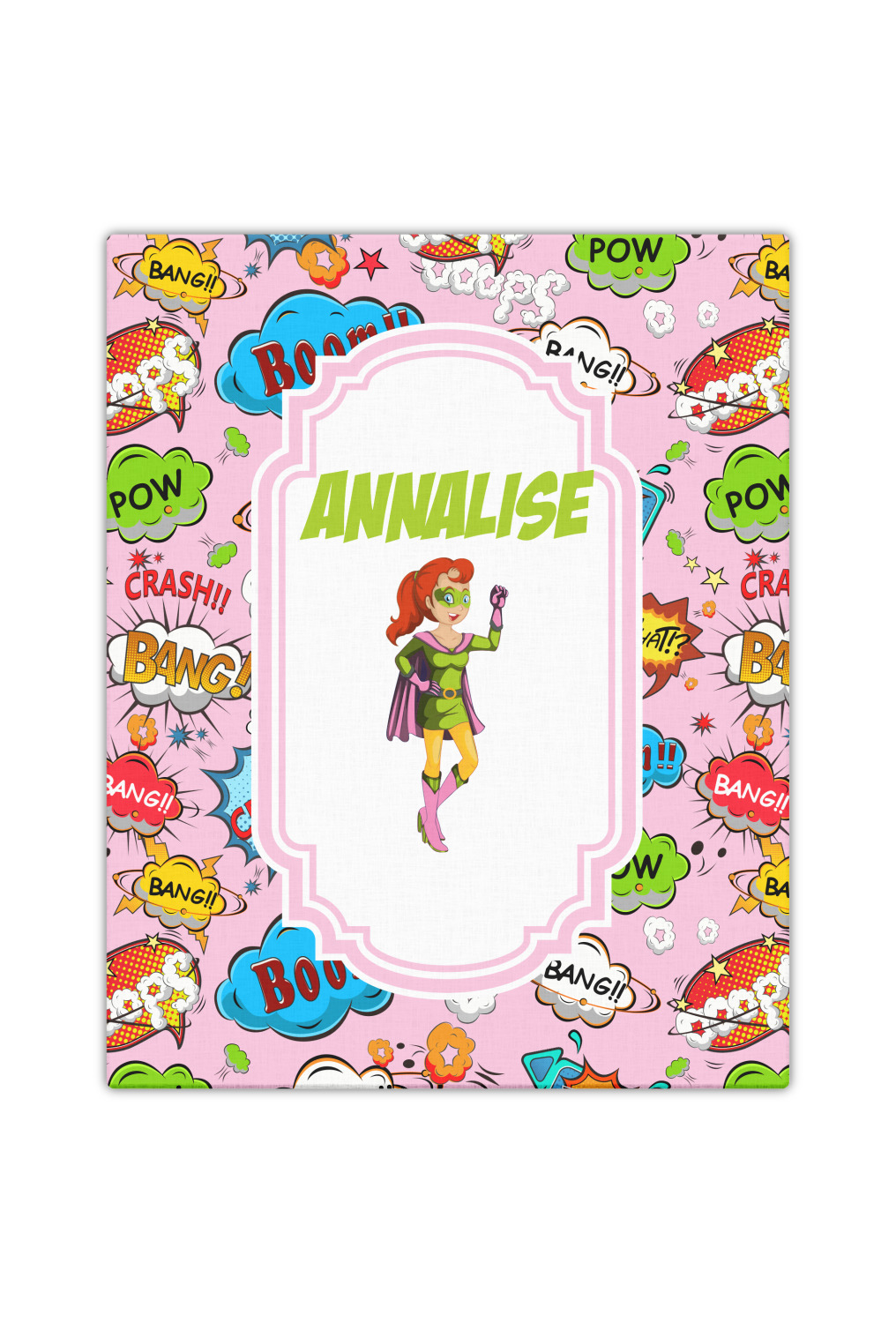 All our superhero women are fully re-color-able - so not only do you decide what color clothes they are wearing, you get to select their hair and skin color as well. So try out our customization system and see what you come up with. We chose a tall frame with the personalization on the top and colored it in matching pink.