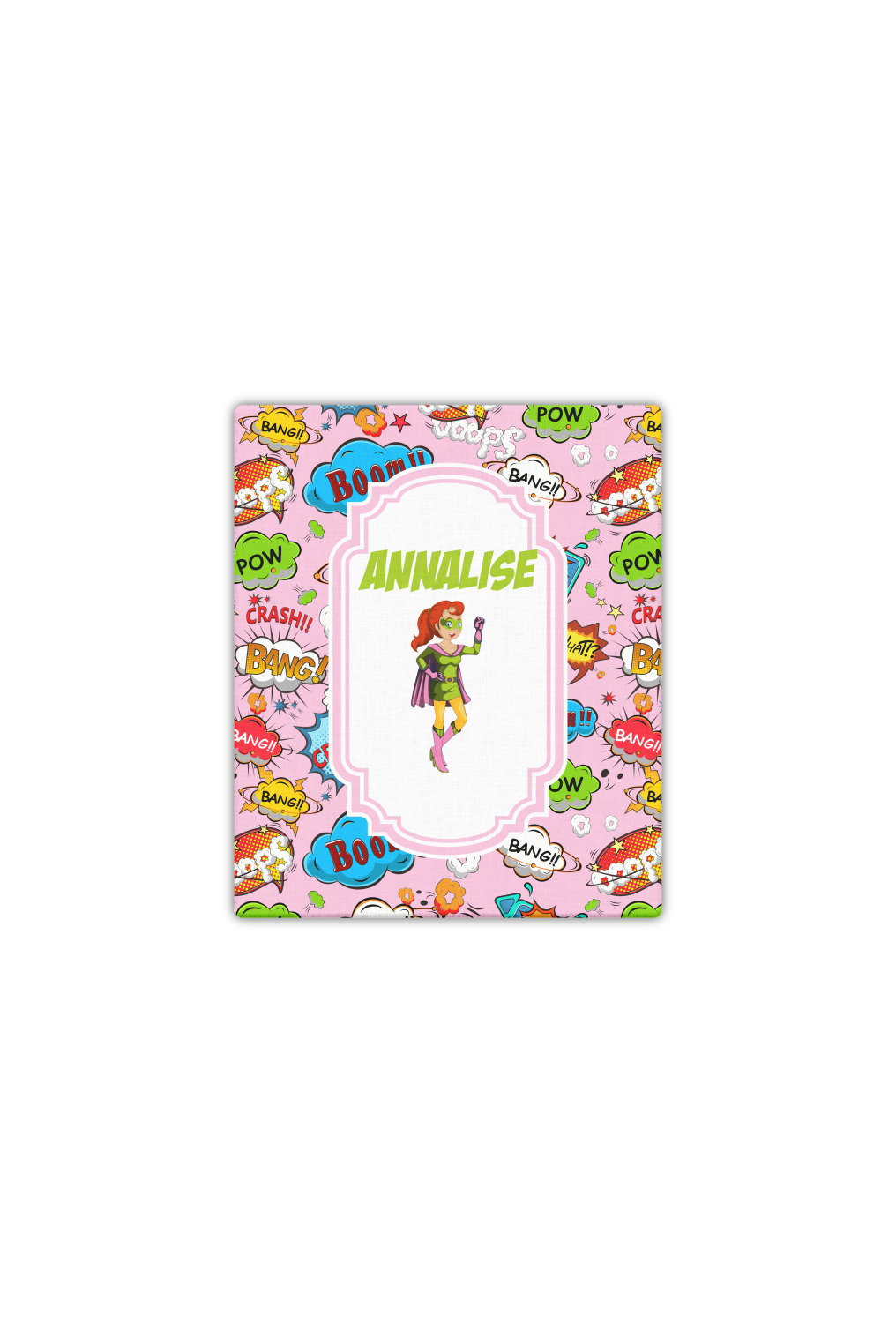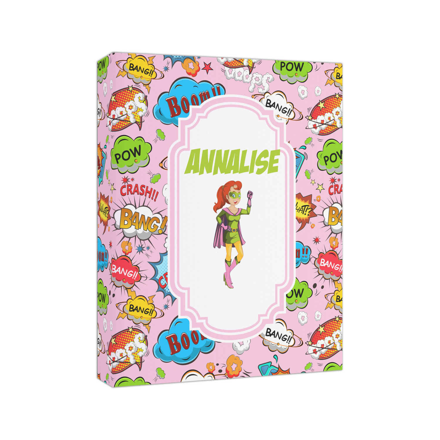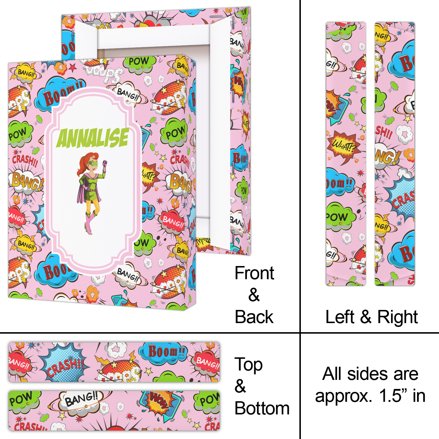 All our superhero women are fully re-color-able - so not only do you decide what color clothes they are wearing, you get to select their hair and skin color as well. So try out our customization system and see what you come up with. We chose a tall frame with the personalization on the top and colored it in matching pink.